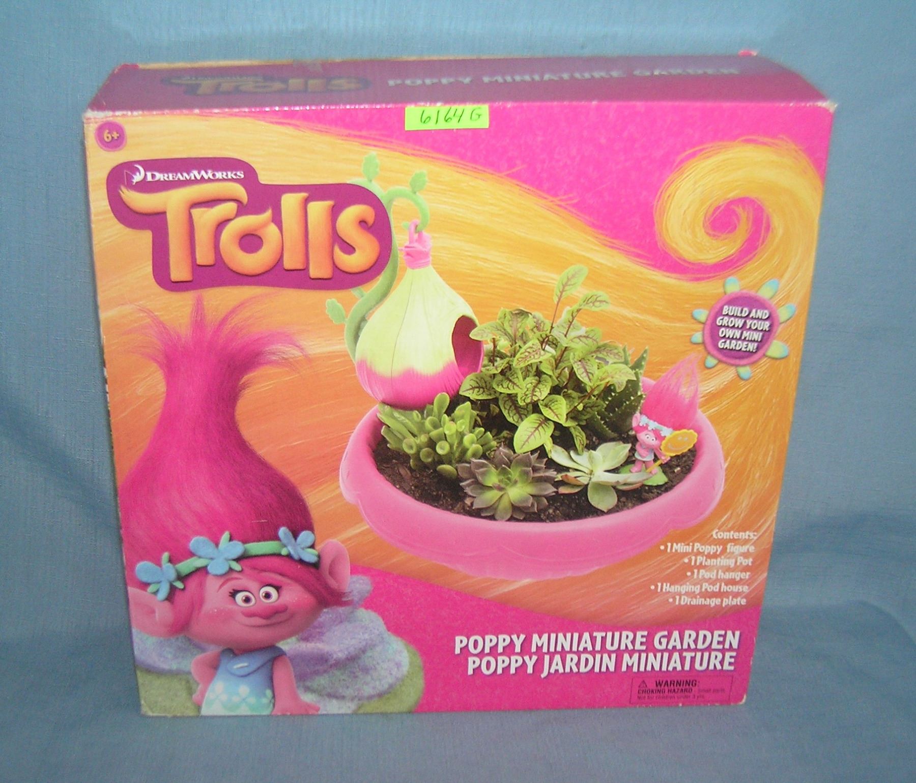 Trolls miniature poppy garden set with original box est. value $30.00-$40.00