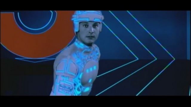 Hero, screen worn in Tron (1982) Alan Bradley (Bruce Boxleitner) right shoulder pauldron from his iconic uniform. Inside the pauldron is handwritten: "Bruce, RT #1" in black marker. Tron was nominated for an Academy Award for Best Costume Design, and this shoulder pauldron comes from the distinctive uniform that has become synonymous with the film itself. White with black circuitry drawn on its face, this uniform's shoulder pauldron was worn onscreen only by Bruce Boxleitner throughout the film while inside a computer mainframe program, whereas the film's other two heroes (Jeff Bridges and Cindy Morgan) wore similar costumes without the shoulder pauldrons. Bruce Boxleitner and Jeff Bridges reprised their roles in the sequel Tron: Legacy (2010), but the costumes were changed to primarily black with white, yellow, or blue circuitry. Approx. 12" long.