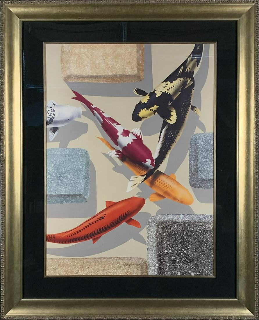 A beautiful print of tropical, colourful fish. This piece has been professionally matted, and custom framed under glass. Image- 36" x 25 1/2". Frame- 50" x 39".