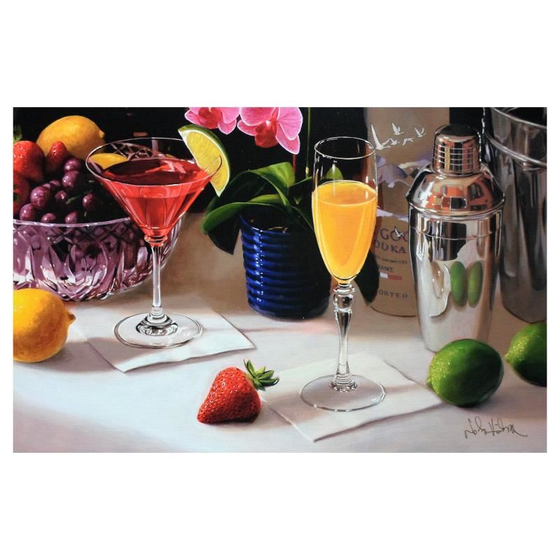 "Tropical Holiday" is a numbered limited edition giclee on canvas by Nobu Hairara. It comes bearing the artist's authorized signature and with a Certificate of Authenticity. Measures approximately 11"x16.5" (image).