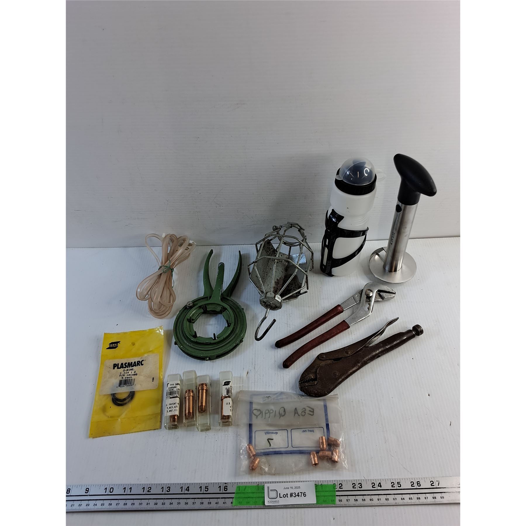 Trouble Light Cover, Pineapple Knife, Water Bottle, Wrenches, Castration Tool and Misc