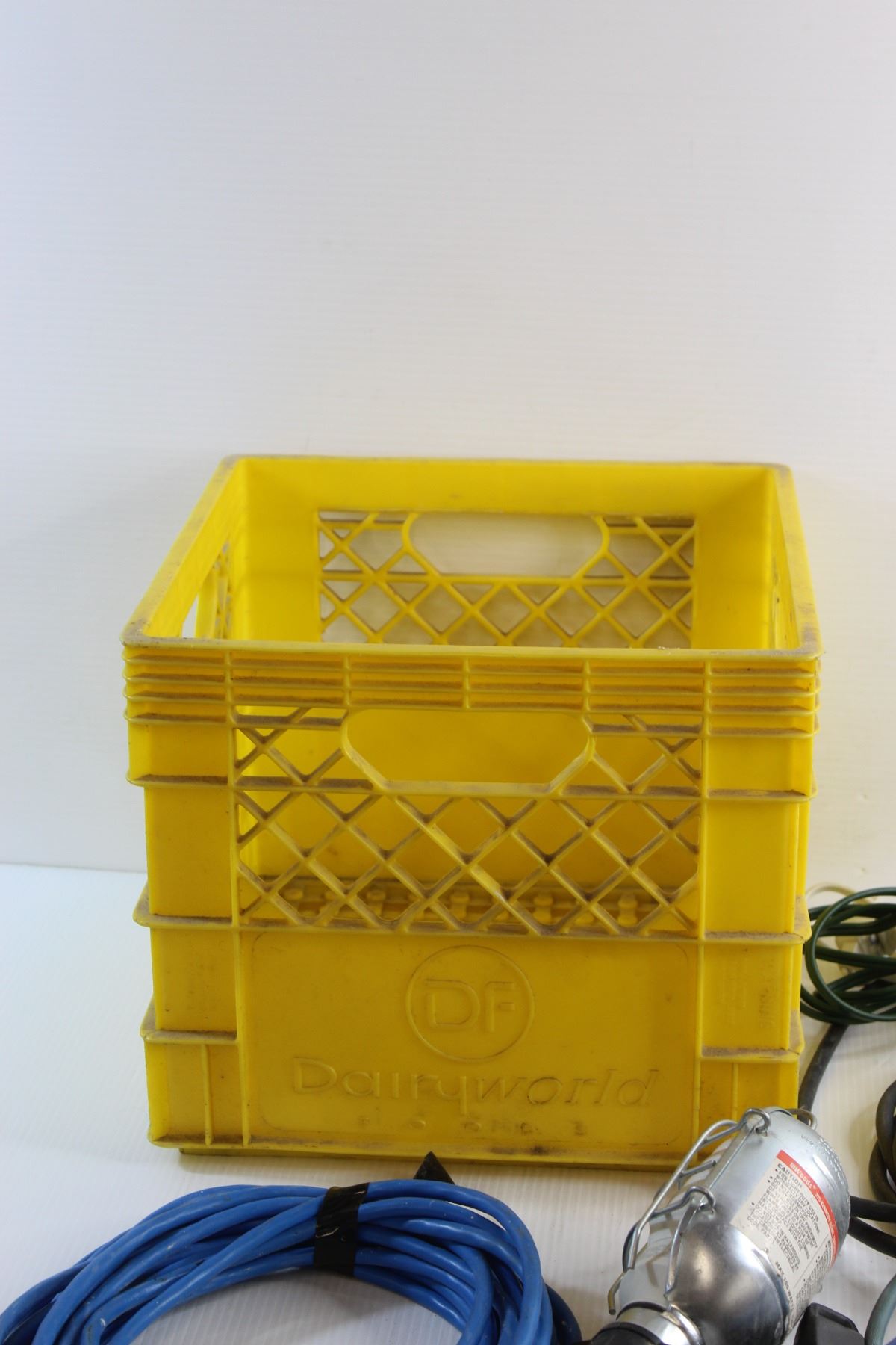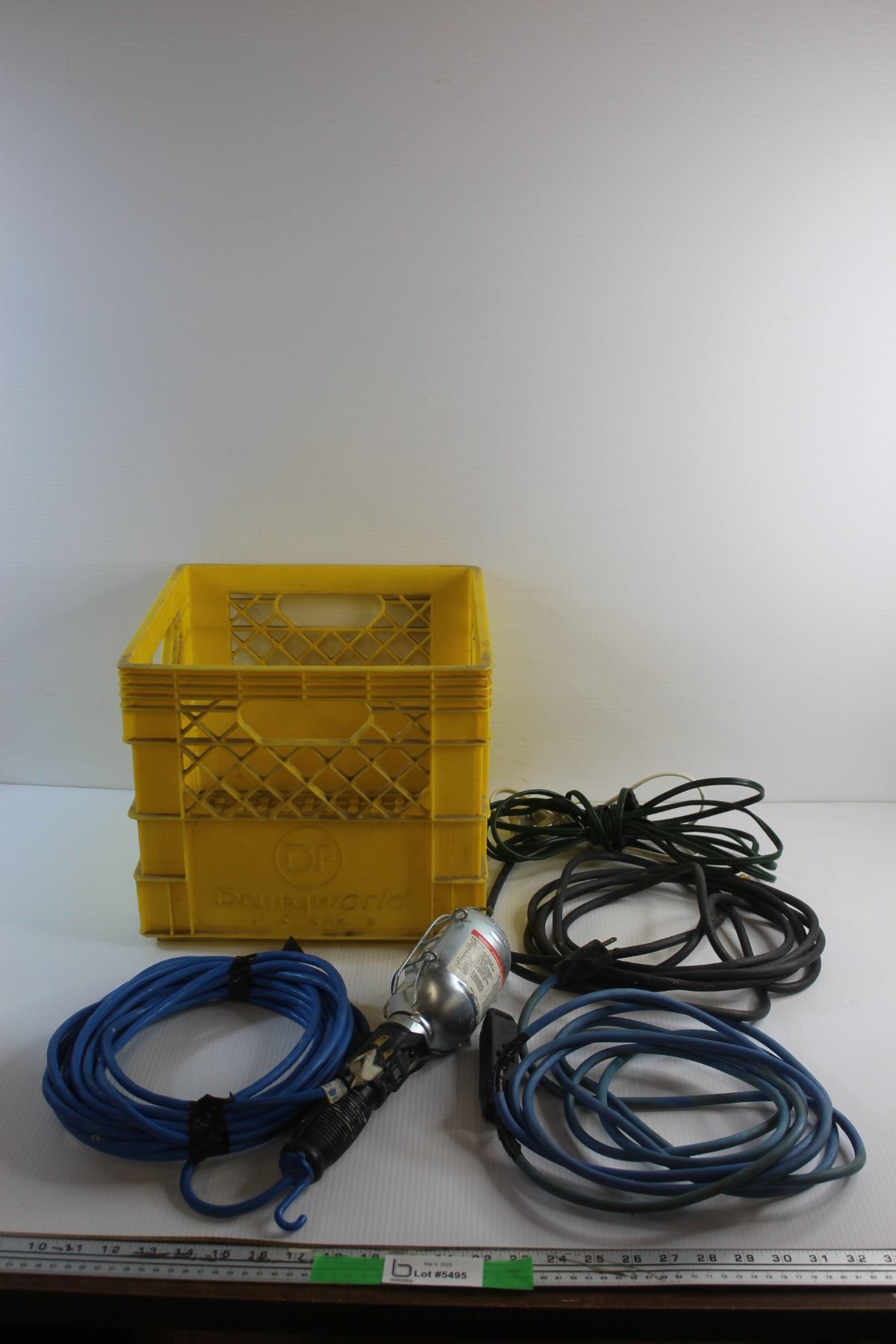Trouble Light, Extension Cords - As Is and Milk Crate 11'' x 13'' x 13''