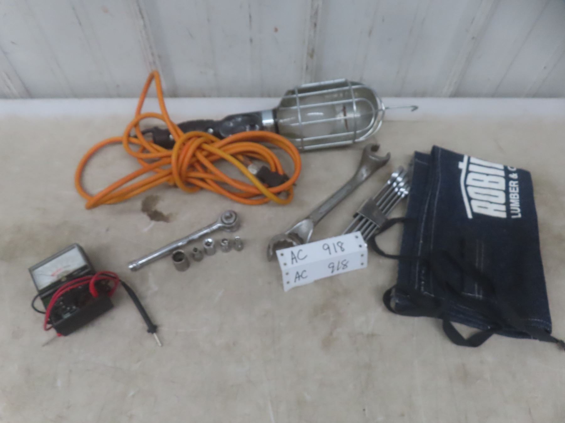 Trouble Light, Sockets, Wrenches, and Multimeter