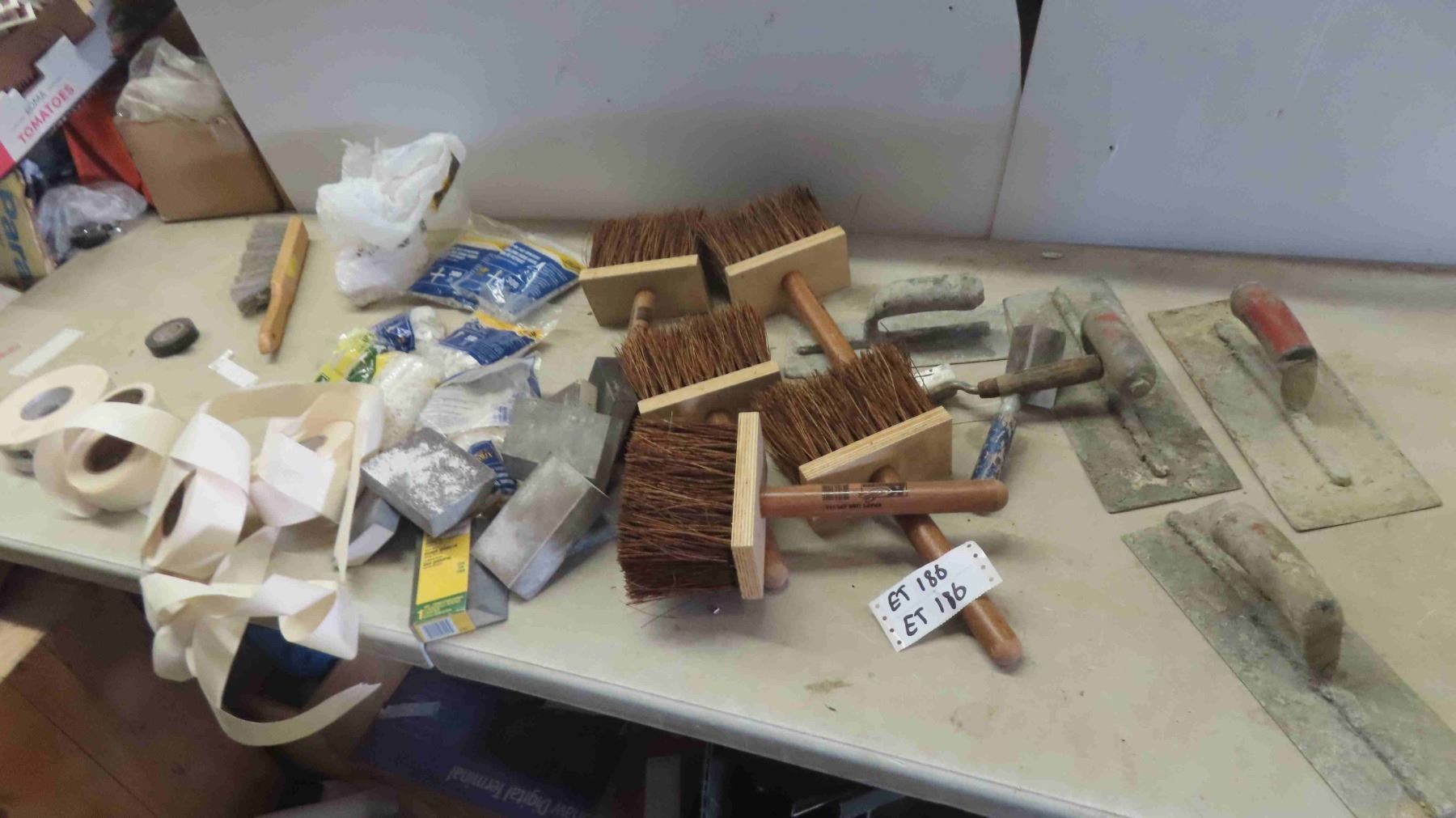 Trowels, Brushes, Sanding Sponge, Tile Wedge Spacers, Drywall Tape & Storage Tub