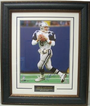 Troy Aikman was the No. 1 overall pick in the 1989 NFL Draft, by the Dallas Cowboys. In Super Bowl XXVII against the Buffalo Bills, Aikman led the Cowboys to a blowout victory, 52–17. Aikman was named Super Bowl MVP after completing 22-of-30 passes for 273 yards and 4 TDs. He also won SB XXVIII and SB XXX and was elected into the Pro Football Hall of Fame in 2006. Troy Aikman has hand autographed this Dallas Cowboys 16x20 Photo with a Custom Leather Premium Frame. Aikman hologram and Certificate of Authenticity from Athlon Sports.