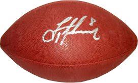 Troy Aikman was the No. 1 overall pick in the 1989 NFL Draft, by the Dallas Cowboys. In Super Bowl XXVII against the Buffalo Bills, Aikman led the Cowboys to a blowout victory, 52–17. Aikman was named Super Bowl MVP after completing 22-of-30 passes for 273 yards and 4 TDs. He also won SB XXVIII and SB XXX and was elected into the Pro Football Hall of Fame in 2006. Troy Aikman has hand autographed this Official NFL Tagliabue Football. Certificate of Authenticity from Athlon Sports Collectibles. Minor stain on back of ball, sold as is, no returns.