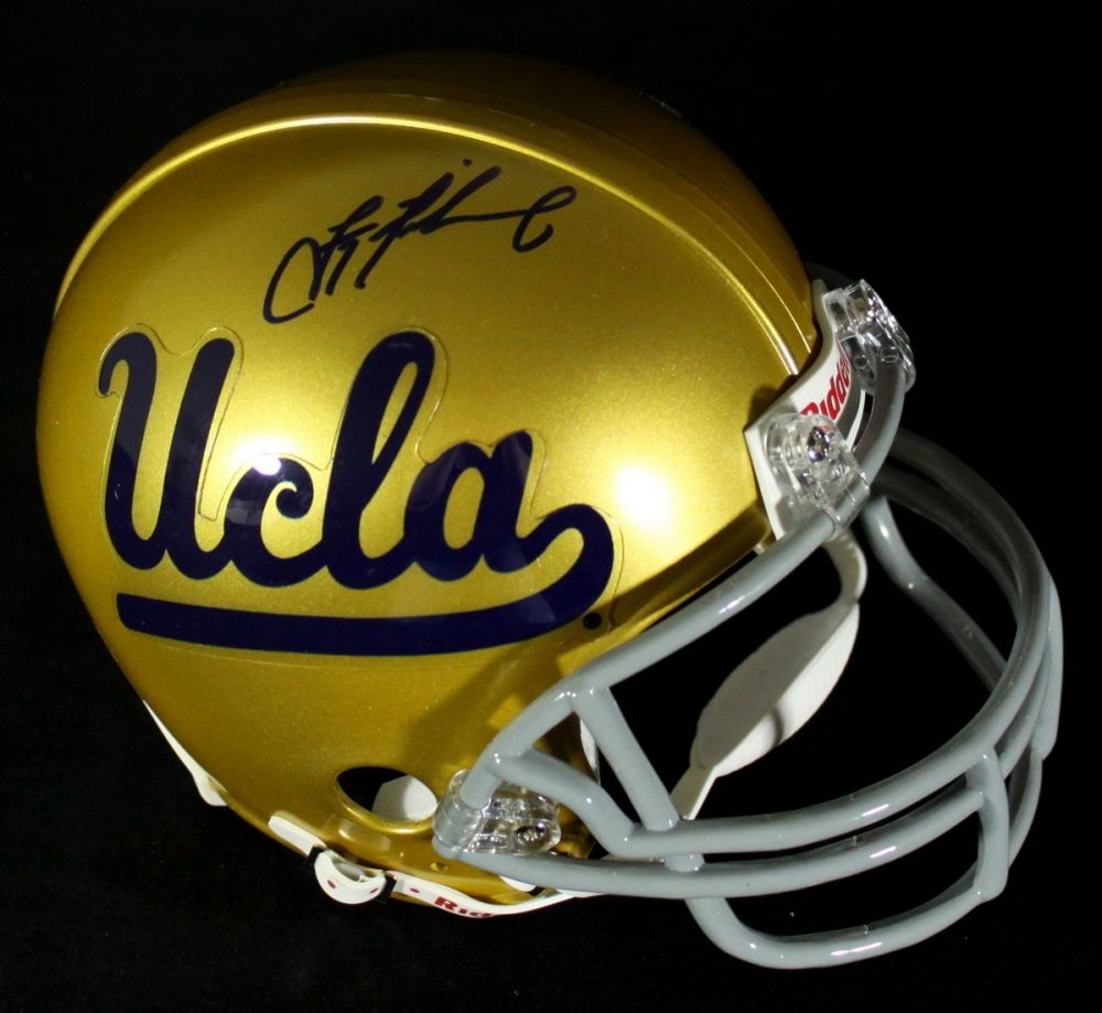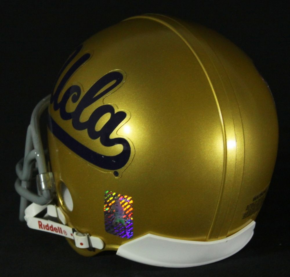 Riddell mini-helmet. Hand-signed in blue felt tip pen by Troy Aikman (Cowboys HOF). Helmet includes an official Troy Aikman hologram for authenticity purposes.