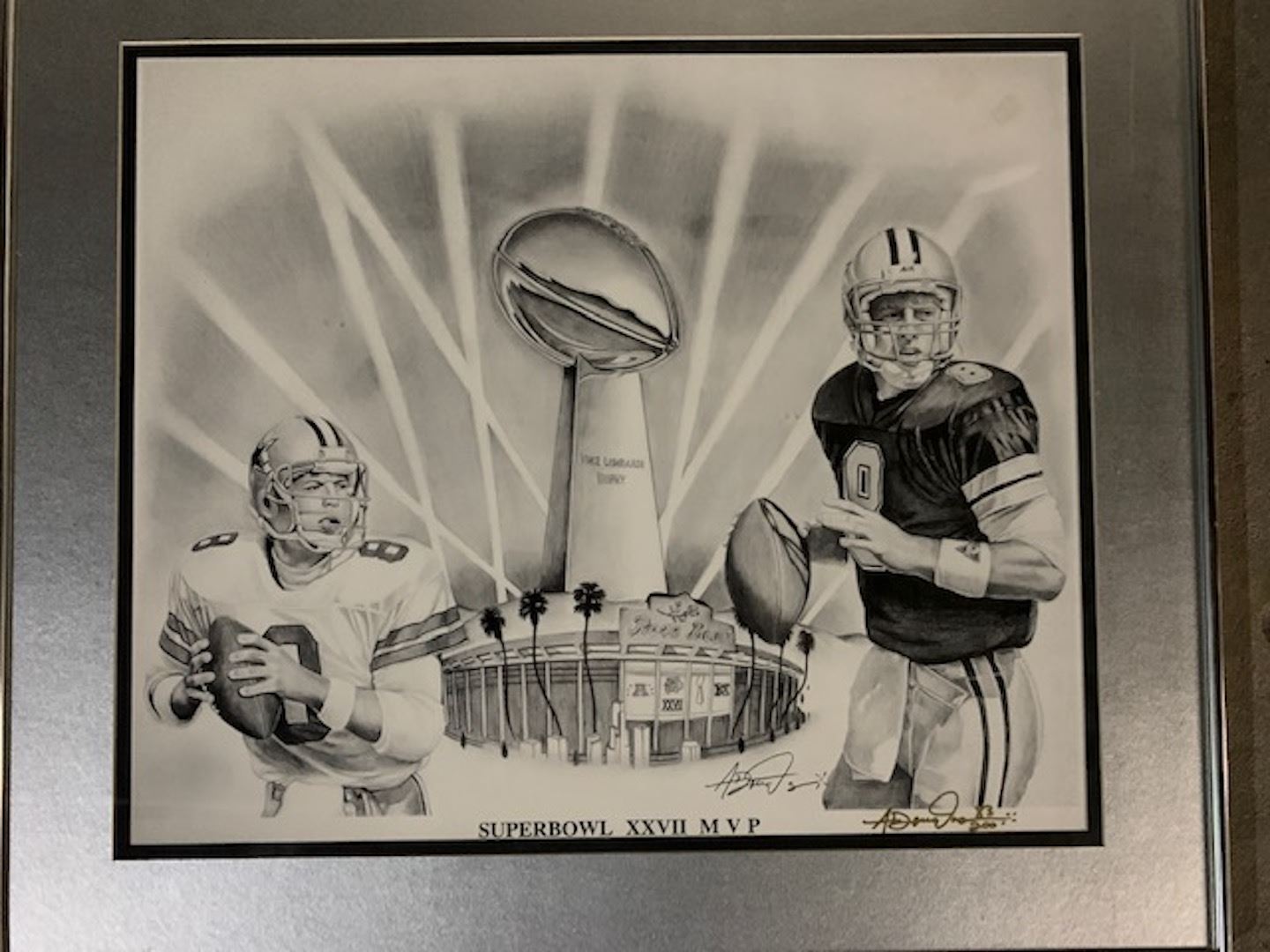Troy Aikman Superbowl XXVII lithograph. 25x28 inches