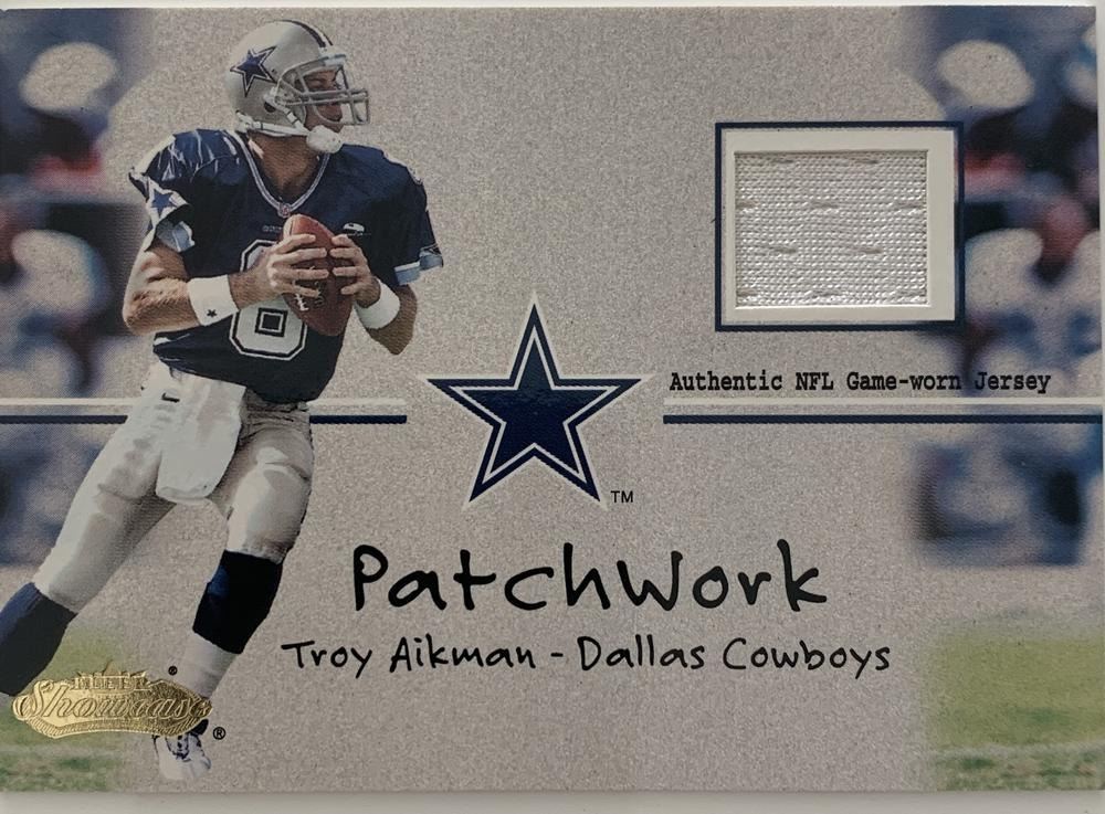 Troy Aikman football card and game used jersey swatch. Unsigned