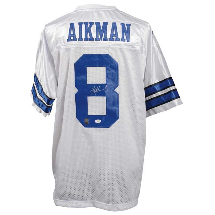 Replica Dallas Cowboys football jersey, with sewn on letters and numbers, signed in silver ink on the number on the back. Accompanied by a certificate of authenticity from James Spence. In very fine condition. Pre-certified Steve Grad/PSA/DNA and RRAuction COA.