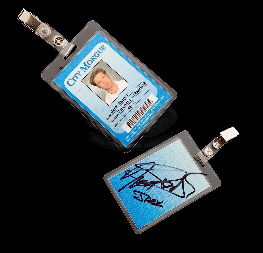 (20th Century Fox Television, 2003 - 2005) Custom-made by the production for use by Jason Priestley as "Jack Harper" during filming of various episodes. The city morgue ID badge features Jack Harper's name, photo and ID number. The back side of the badge has been autographed by Jason Priestley and remains in very good condition. Measures 5.5" x 2.5".
