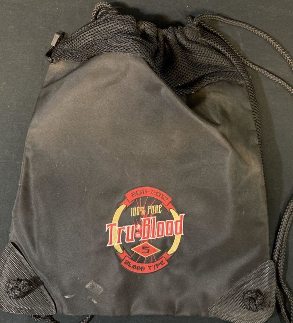 Original beach bag given to a member of the cast crew of the fantasy horror drama television series "True Blood" (2008–2014). based on The Southern Vampire Mysteries, a series of novels by Charlaine Harris.