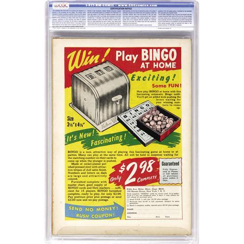 50. Since we cannot examine encapsulated notes or comics, they are sold "as is" without our grading opinion, and may not be returned for any reason. Auctioneer shall not be liable for any patent or latent defect or controversy pertaining to or arising from any encapsulated collectible. In any such instance, purchaser's remedy, if any, shall be solely against the service certifying the collectible.