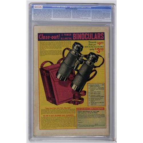 Fredric Wertham had a field day with this one in the pages of <B>Seduction of the Innocent</B></I>, particularly as regards a Jack Cole story with two men being dragged behind speeding cars. This issue was the second time in this series the story had been used. As Wertham noted about V2#1: "This time the story was promoted from the middle of the book to first place, and the dragging-to-death illustration was the frontispiece." On top of that, the issue also has art by Alex Toth and Wally Wood. And this copy is the only one graded above 5.5 by CGC to date. Overstreet 2006 VF/NM 9.0 value = $841; NM- 9.2 value = $1,150. CGC census 11/06: 1 in 9.0, none higher. <I>From the Crippen Collection.</B></I><BR><BR><b>Shipping:</b> Slabbed Comic (<a target="_blank" href="http://www.heritageauctions.com/common/shipping.php">view shipping information</a>)