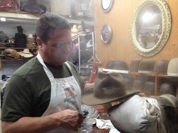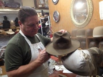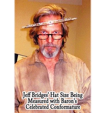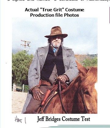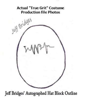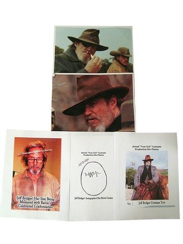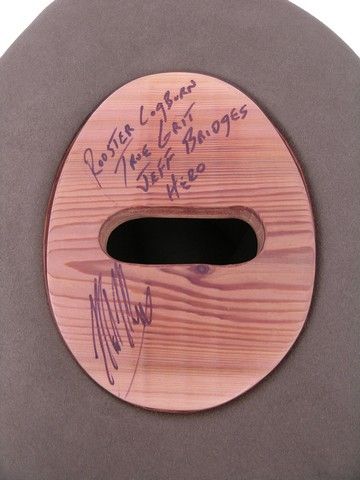 From the box office smash, critically acclaimed award winning Coen Brother's "True Grit" (2010), this is a grand collectable set! First, one of Jeff Bridge's screen worn hero iconic "Rooster Cogburn" hats, aged and completed with the infamous crown pinch hole. This hat was created by the Legendary Baron Hats Studios for the movie, known for over fifty years as the leader in most of the famous hats for TV, Movies, Rock Stars and Celebrities. In fact, they made the first Rooster Cogburn "True Grit" hat for John Wayne in the original movie (they were the hat maker of choice for many of Wayne's movies and for his personal collection). Baron's also made the hats for the other main characters in this version of "True Grit", including Mattie Ross (Hailee Steinfeld), LeBoeuf (Matt Damon), Tom Chaney (Josh Brolin) and many others. Jeff Bridges' hat was hand crafted by Master Hatter Mark Mejia. It includes the actual one-of-a-kind custom hat block, created by measuring 28 points of Jeff's head with Baron's own unique "conformature". This is the actual block created and used to craft his hats. It is signed by Master Hatter Mark Mejia, and has his hand written notes: "ROOSTER COGBURN - TRUE GRIT - JEFF BRIDGES - HERO" written on it. The hat and block comes in the original Baron Hat custom hatbox used to transport it to and from production. Along with copies of some of the original production notes, signed by Jeff Bridges. This is the first hero hat and custom block ever offered by Mr. Mejia or Baron Hats in an auction (you can see many of their famous hero hats at their Hollywood Hat Museum at their studios in Burbank, CA, or check them out at www.baronhats.com). It comes with a Letter of Provenience from Mark Mejia and the Baron Hats Studios.