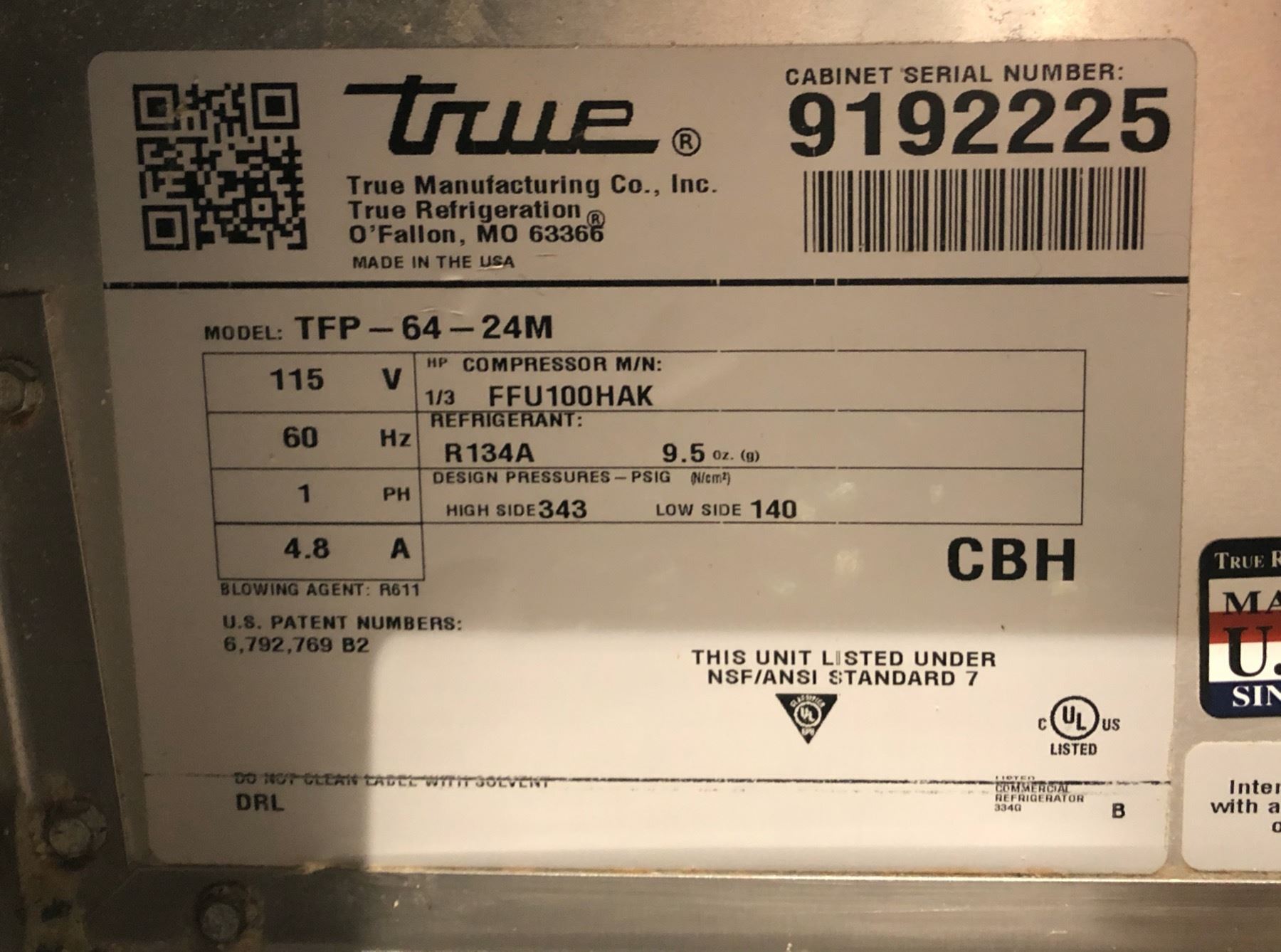 True Manufacturing - 64in sandwich/salad prep table w/refrigerated base - Model: TFP-64-24M