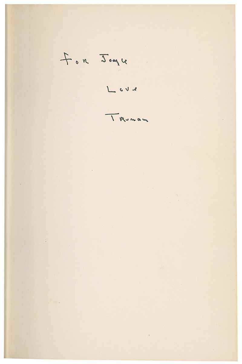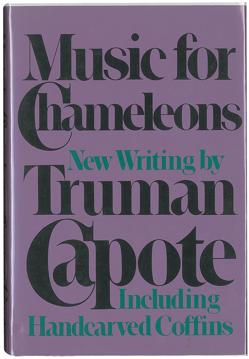 Signed book: Music for Chameleons. First edition, later printing. NY: Random House, 1980. Hardcover with dustjacket, 5.75 x 8.5, 262 pages. Signed and inscribed on the first free end page in black ink, “For Joyce, Love, Truman.” In fine condition, with slight soiling to textblock edges, very slight discoloration to free end papers, and a few minor creases to dustjacket as well as flaps being very slightly yellowed.