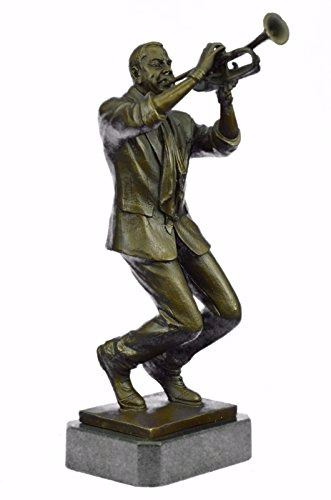 This Musician Blares Out Notes As He Plays His Trumpet High In The Air. He Lifts His Arms And Bends His Elbows Letting His Trumpet And Body Move As One. He Wears A Fitted Suit Jacket And A Tie. This Is A Unique Bronze Sculpture As It Is An Illusion To The Eye. It A Solid Piece Of Bronze Yet The Sculpture Appears To Be Floating. His Jacket Is Opened Presenting A Missing Body And A Flowing Tie Hangs In The Middle Of The Empty Space. It Is Quite A Unique Design And A Perfect Gift For The Music Lover In Your Life. This Sculpture Was Cast Using The "Lost Wax Method" And Has A Two Toned Brown Patina. Size: 12X4 inches. Weight: 7 LBS.