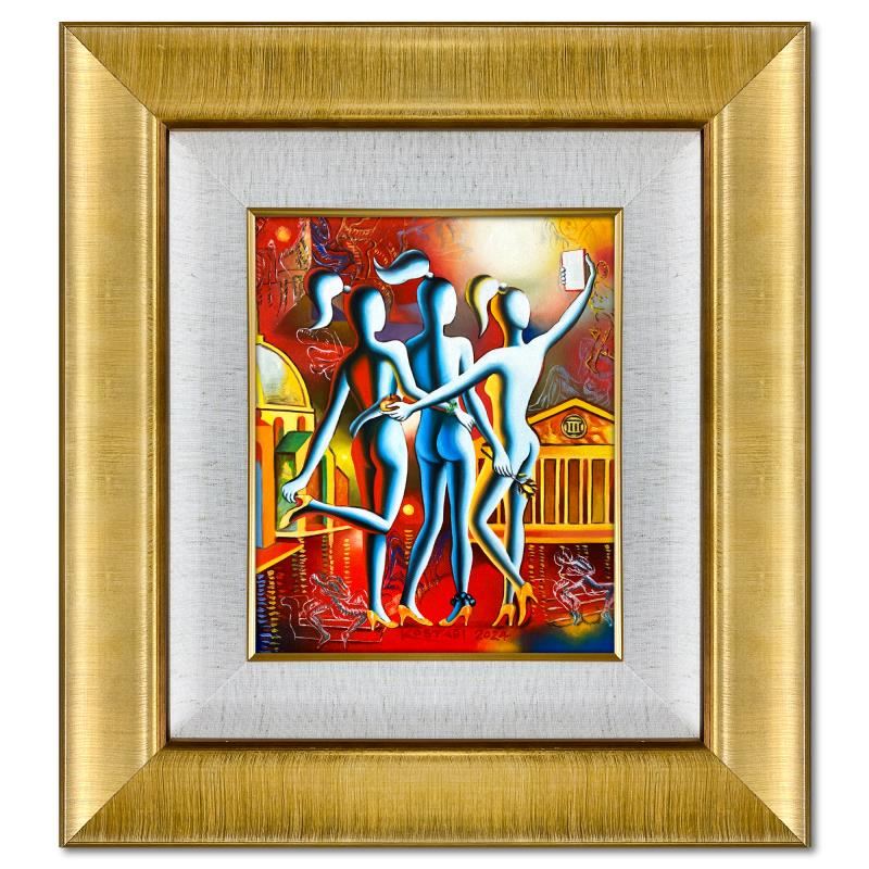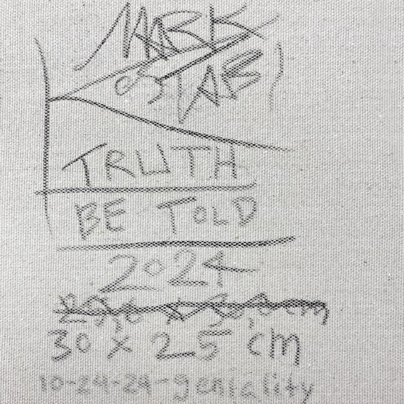 "Truth Be Told" is an original oil painting on canvas by Mark Kostabi, hand signed by the artist. This piece comes framed. Includes Certificate of Authenticity. Measures approx. 22" x 20" (frame), 12" x 10" (image). This item requires special handling and may have a longer than usual turnaround.
