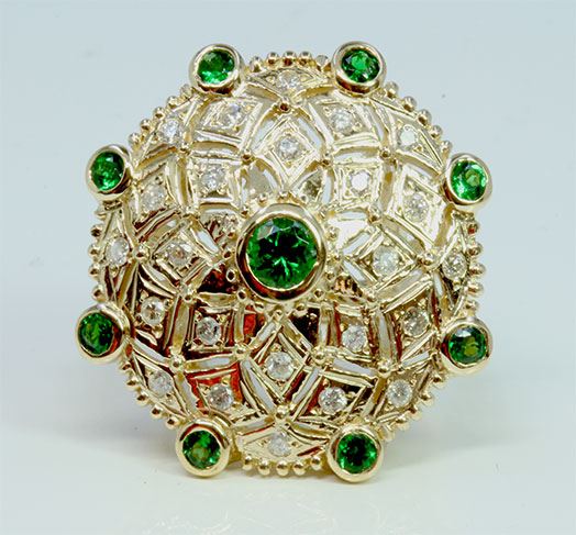 Tsavorite 1.03 ct & Diamond 0.49 ct Ring 9.97 gr 14K Yellow Gold GVK 2/11/15/7