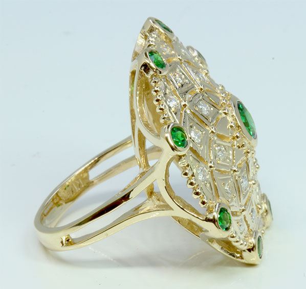 Tsavorite 1.03 ct & Diamond 0.49 ct Ring 9.97 gr 14K Yellow Gold