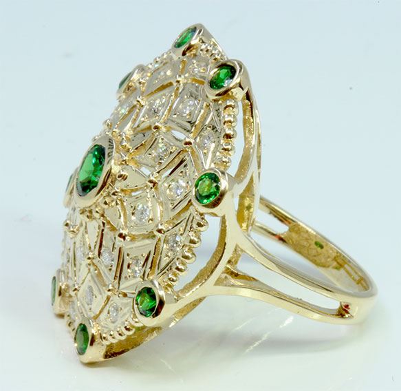 Tsavorite 1.03 ct & Diamond 0.49 ct Ring 9.97 gr 14K Yellow Gold GVK 2/11/15/7