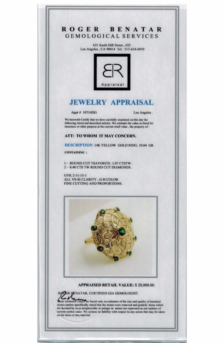 Tsavorite 1.03 ct & Diamond 0.49 ct Ring 9.97 gr 14K Yellow Gold GVK 2/11/15/7