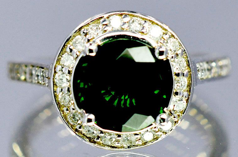 14k White Gold 4.75 approx grams 1.74ct Top Gem Tsavorite Round .52ctw Round Diamond G-H color VS-SI clarity size 6.75