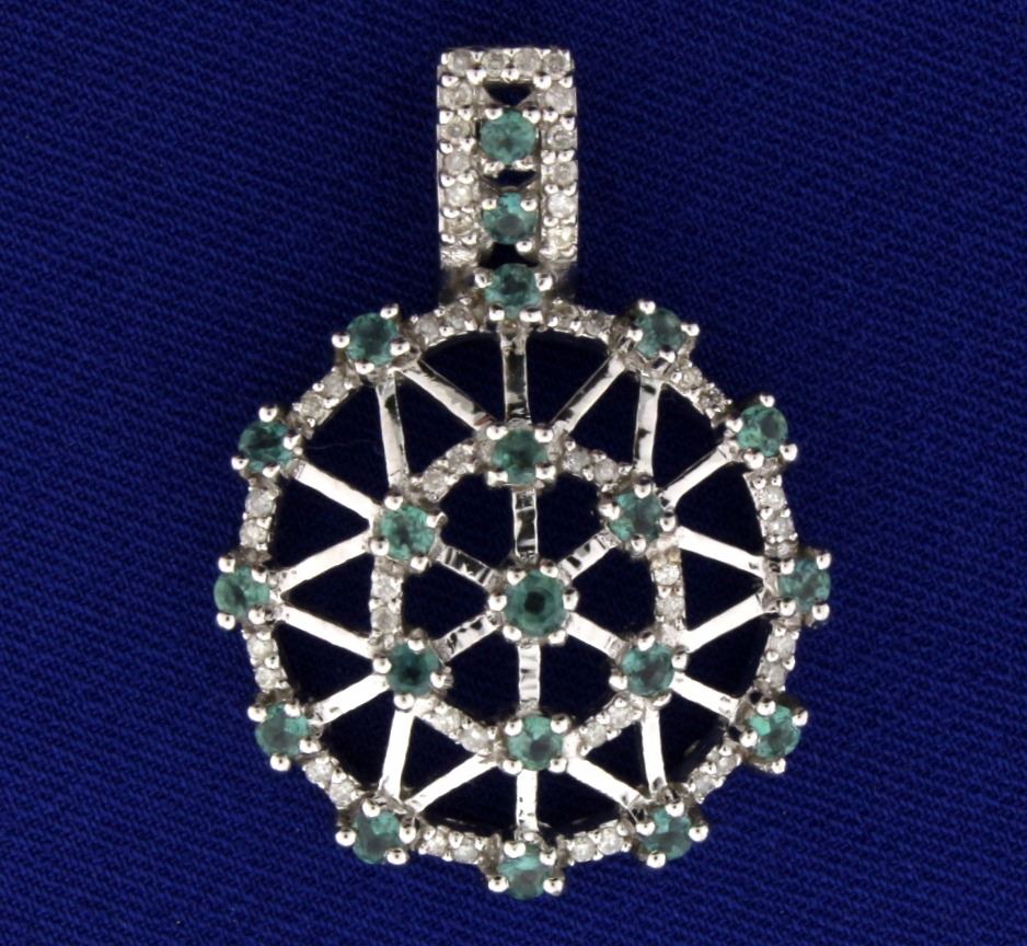In 14k white gold, contains 1/2ct TW of high quality diamonds of H color/I clarity. Also contains twenty on 2.5mm natural tsavorite garnet gemstones with excellent green color and clarity. 1 1/2" long. 10.3g.