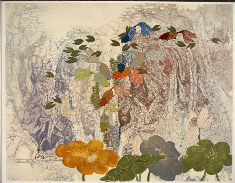 Bliss and tranqulity may be bestowed upon all fish; may they live in harmony with Mother Nature...Artist: Tseng Ying Pang (National Artist of Taiwan)Title: "Tranquil Pool"Size: 22" x 28 1/2" Medium: Print on paperLimited Edition: 292/300Publisher: T.T. Ne