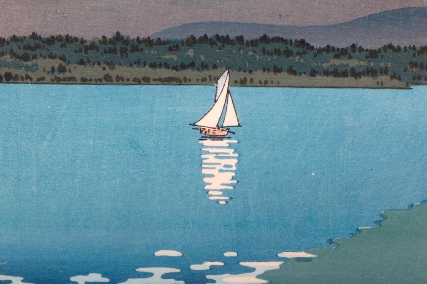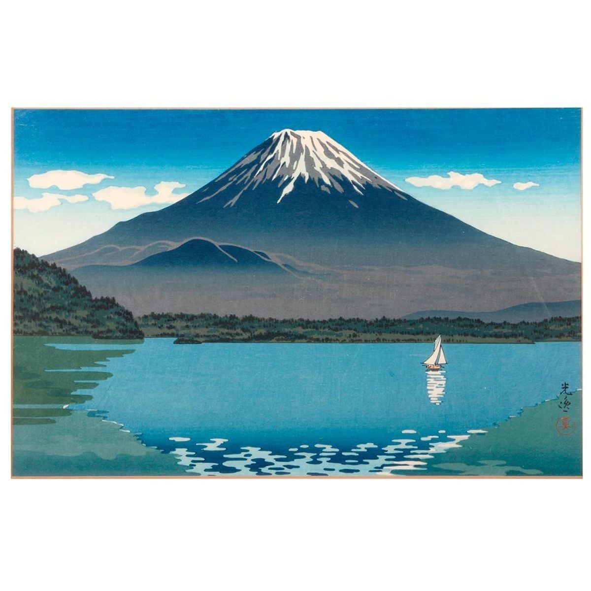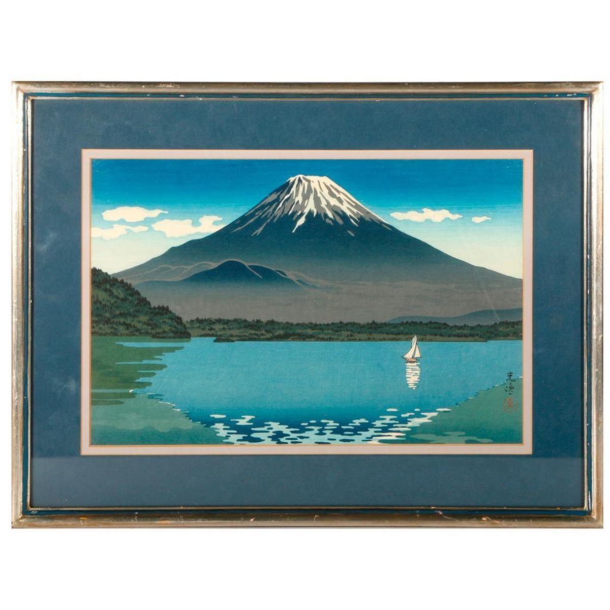 Artist: Tsuchiya Koitsu (1870 - 1949). Subject/Title: Lake Shoji in Summer. Date Created: 20th century. Medium: Woodblock print. Size Image: 9 1/4 inches high x 14. Size Frame: 14 1/2 inches high x 19 1/4. Condition: Good.
