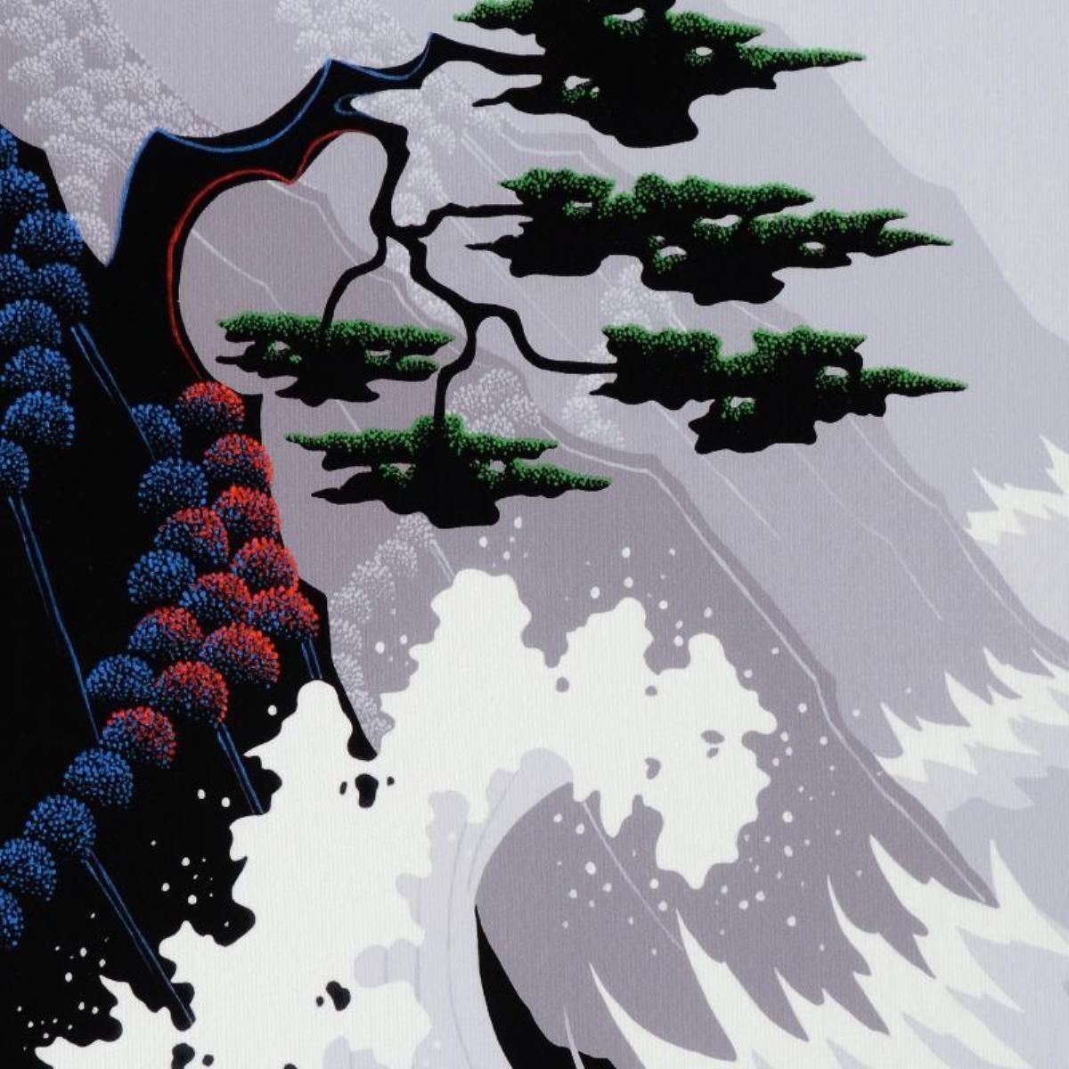 Larissa Holt, a student of distinguished artist Eyvind Earle(1916-2000), uses bold colors and breathtaking scenery to create images of Nature in her own unique style. "Tsunami" is a limited edition giclee on stretched canvas by Holt, numbered and bearing Holt's authorized signature. This piece comes gallery wrapped. Includes Letter of Authenticity. Measures approx. 10" x 12.5" x 1.5" (image).