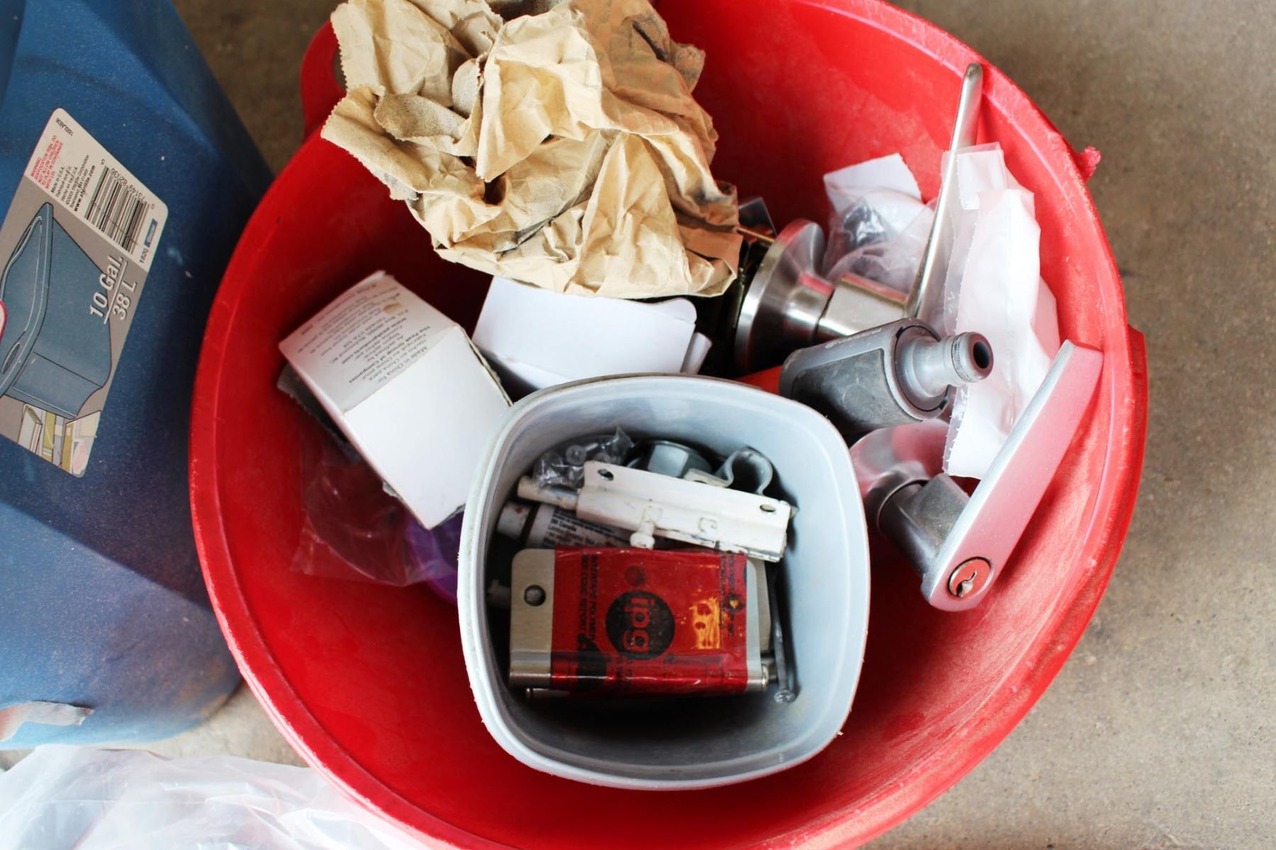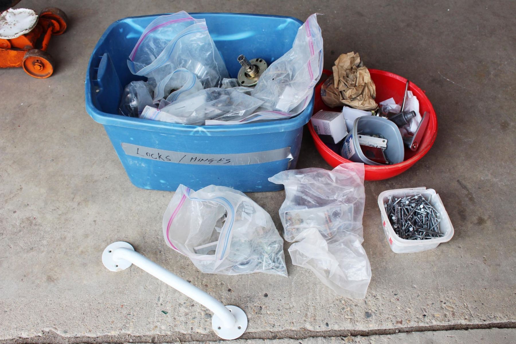 Tub Full of Building Materials (Door Knobs, Hinges, Screws, etc)