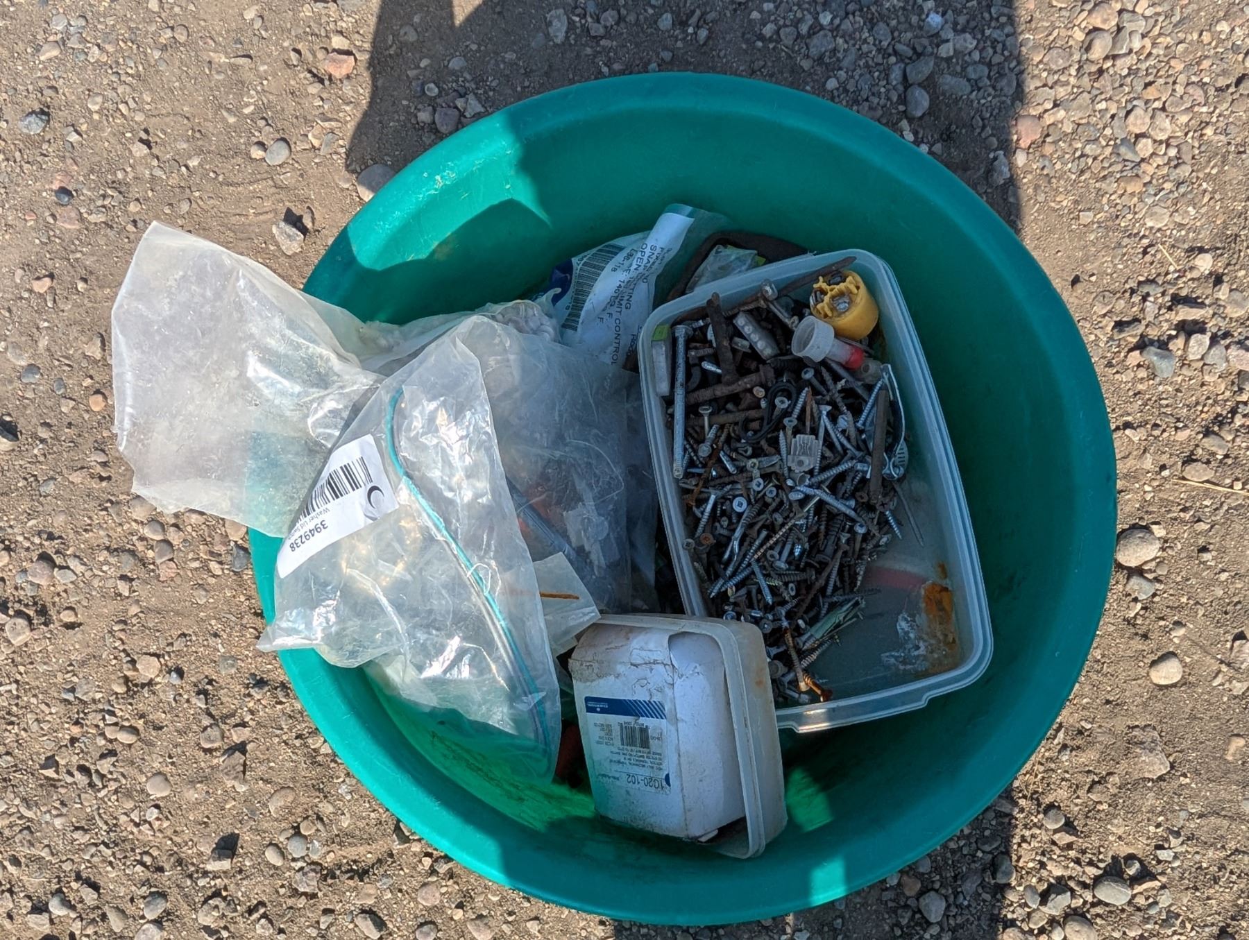 Tub Of misc. Tool Parts (Screws, Levels, And etc. as Shown)