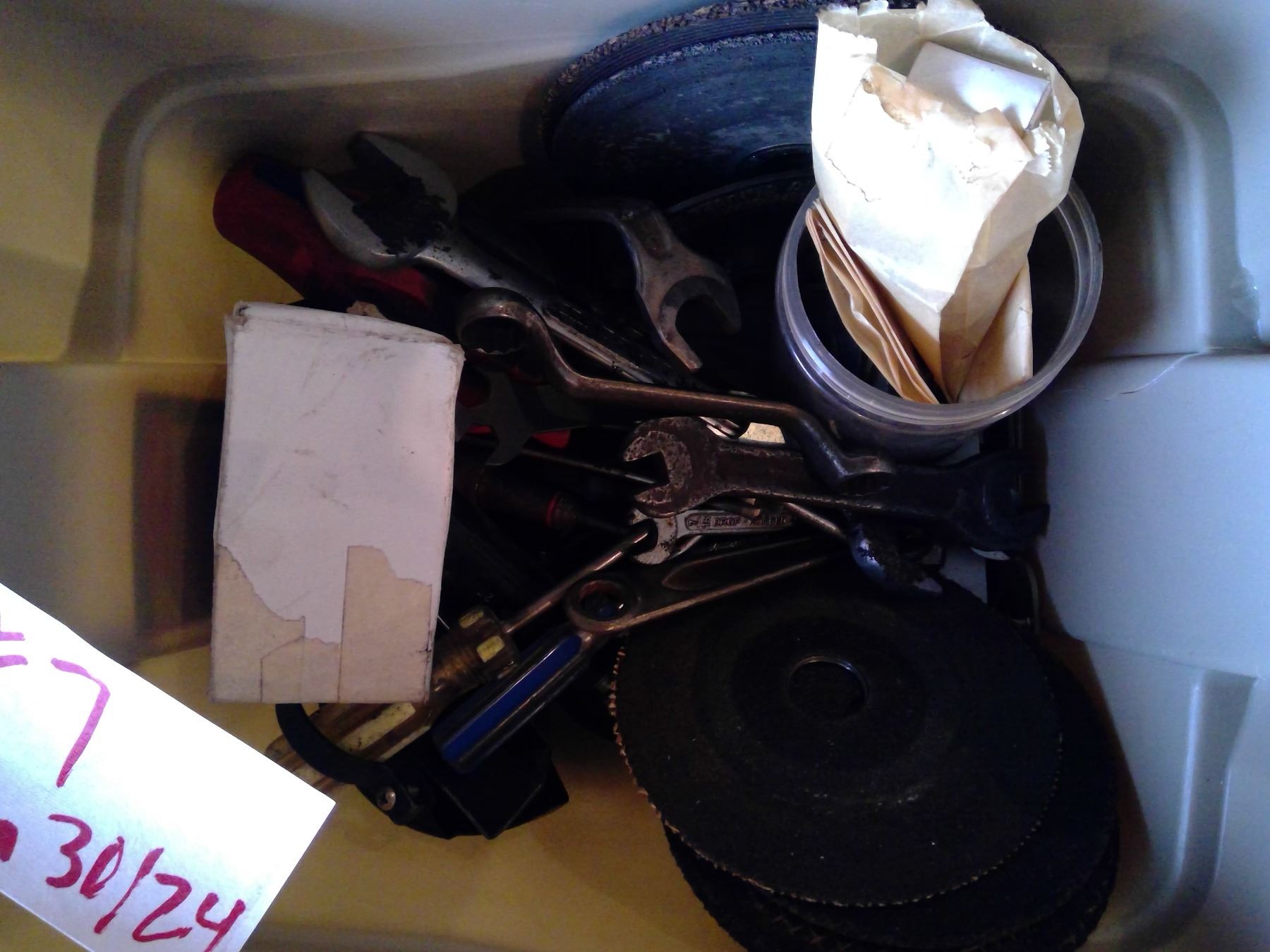 Tub of Assorted tools and supplies