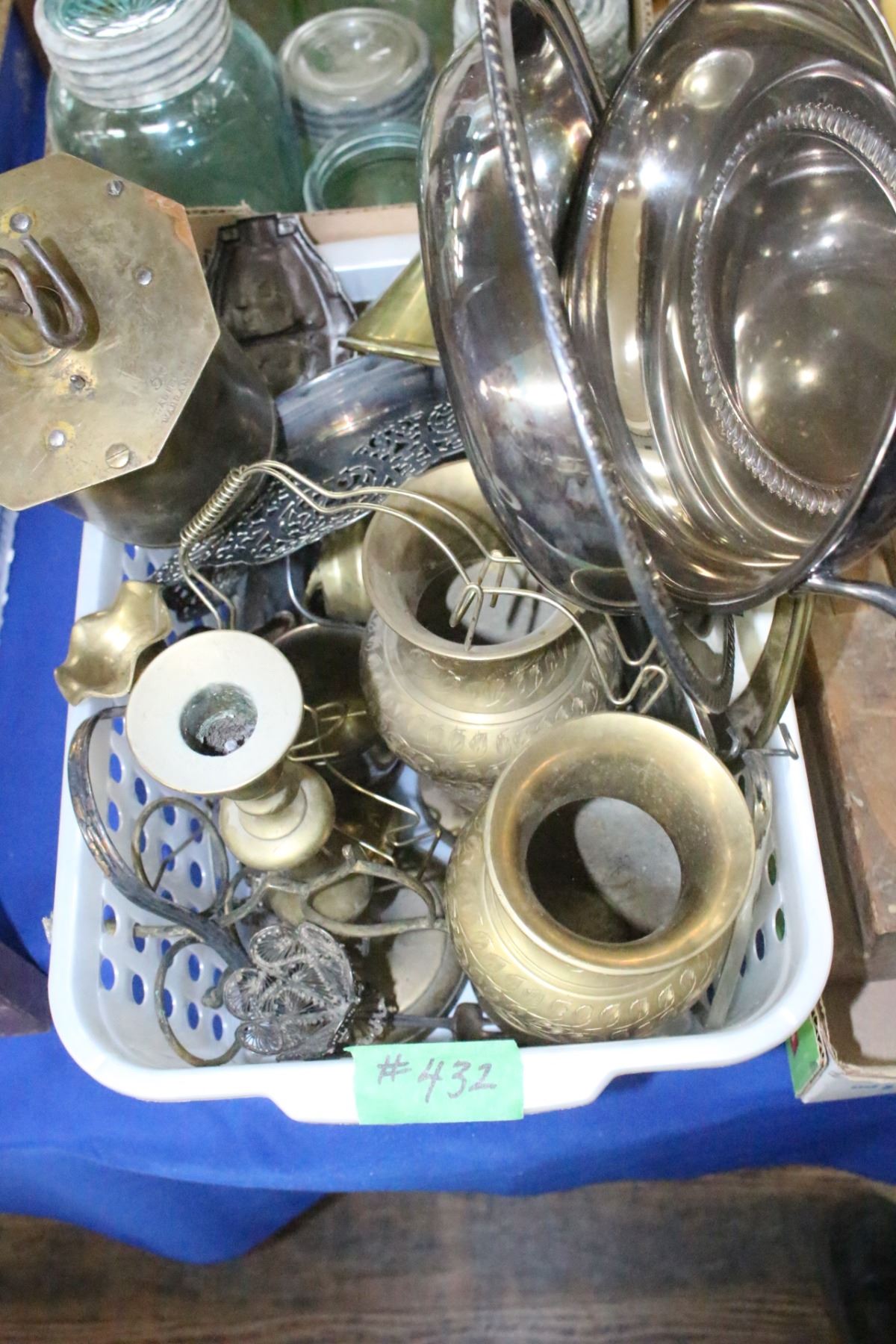 Tub with Metal Items (Brass, Silver Plate) - Vases, etc.