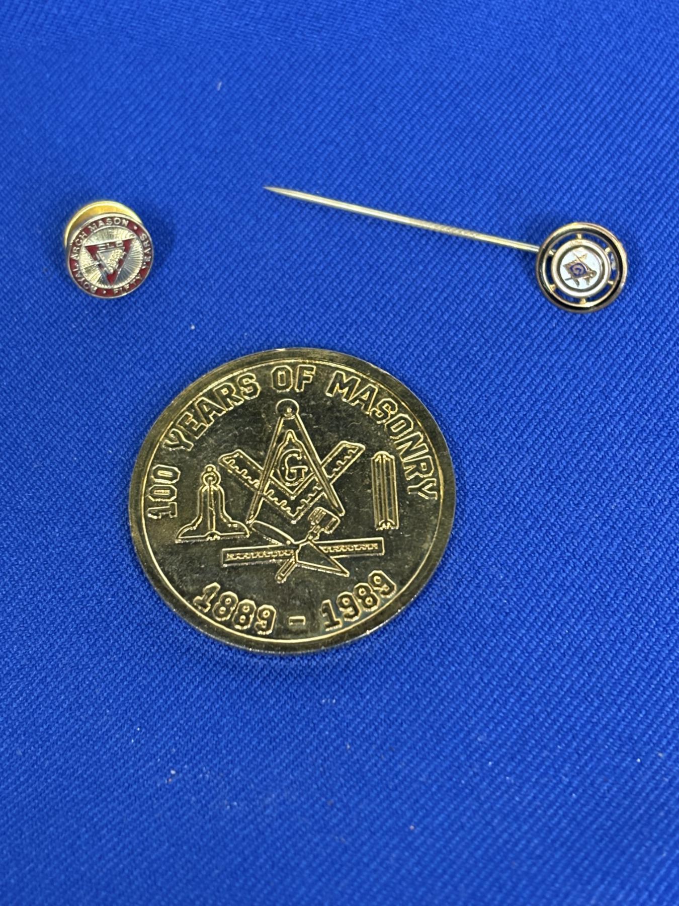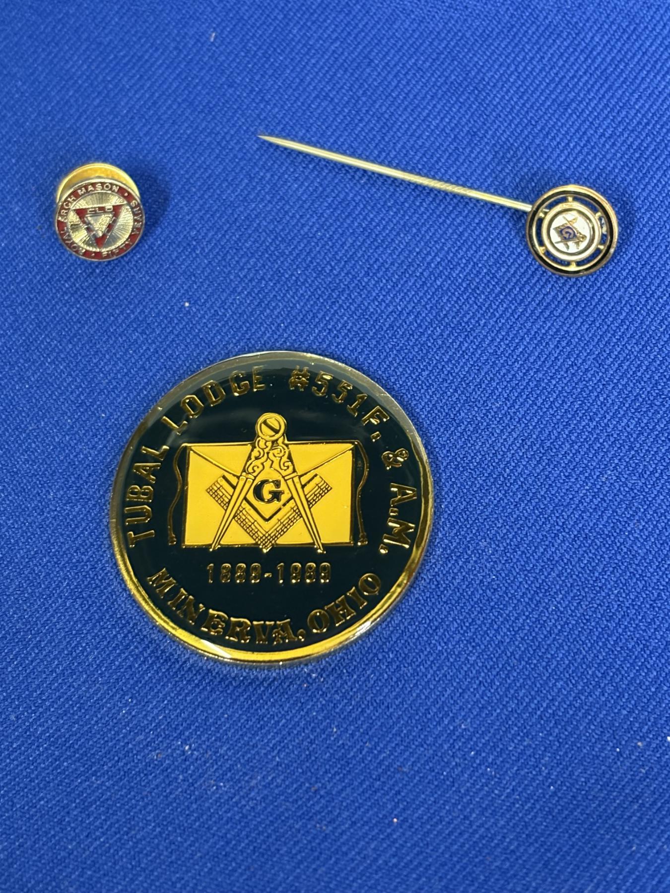 Tubal Lodge #551F, & A.M. - Minerva Ohio 1889-1989 - 100 Years of Masonry Coin & Pin