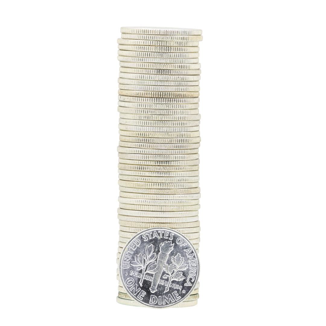 One Tube of 50 1960 Roosevelt Dimes BU.