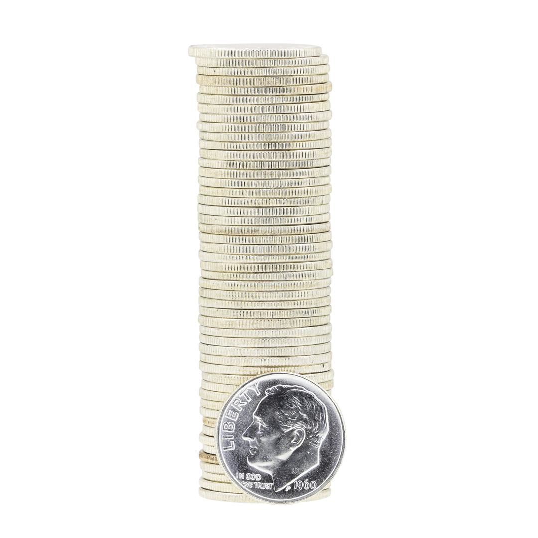 One Tube of 50 1960 Roosevelt Dimes BU.