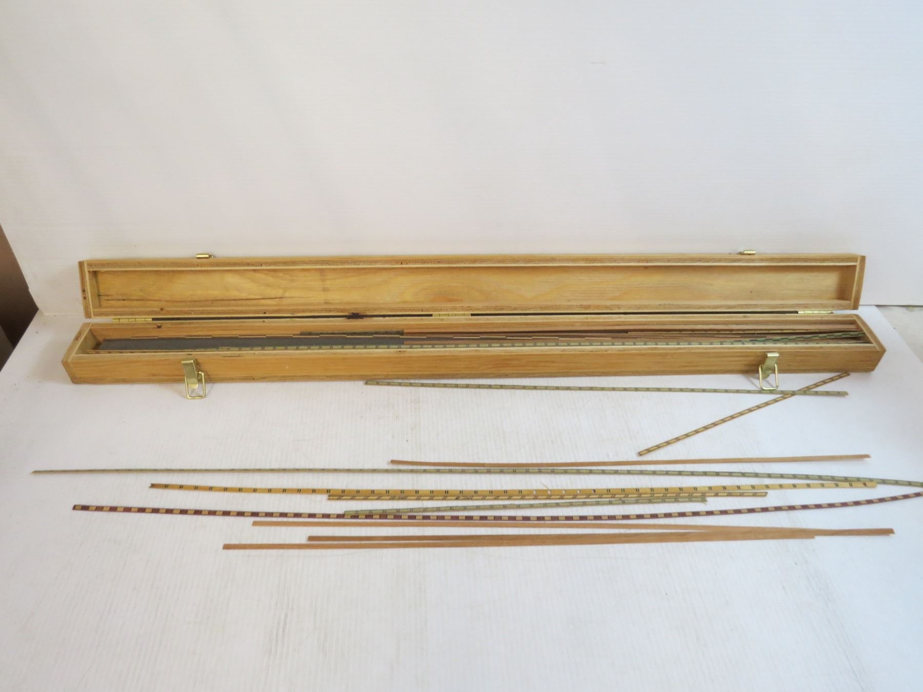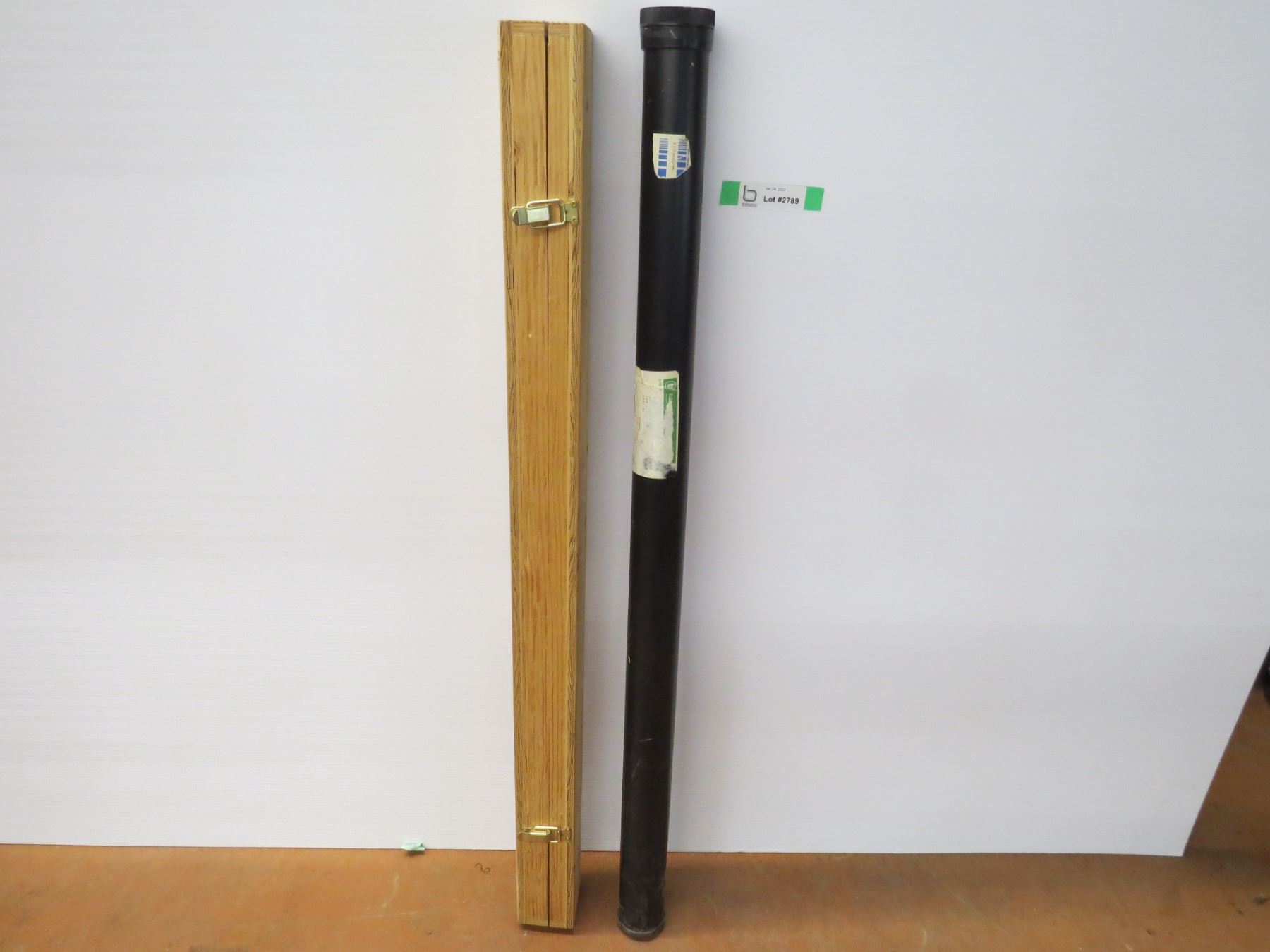 *Tube with Unknown Paper Rolled Inside (cannot remove - blue prints?) - Wood Case w/veneer strips Inside