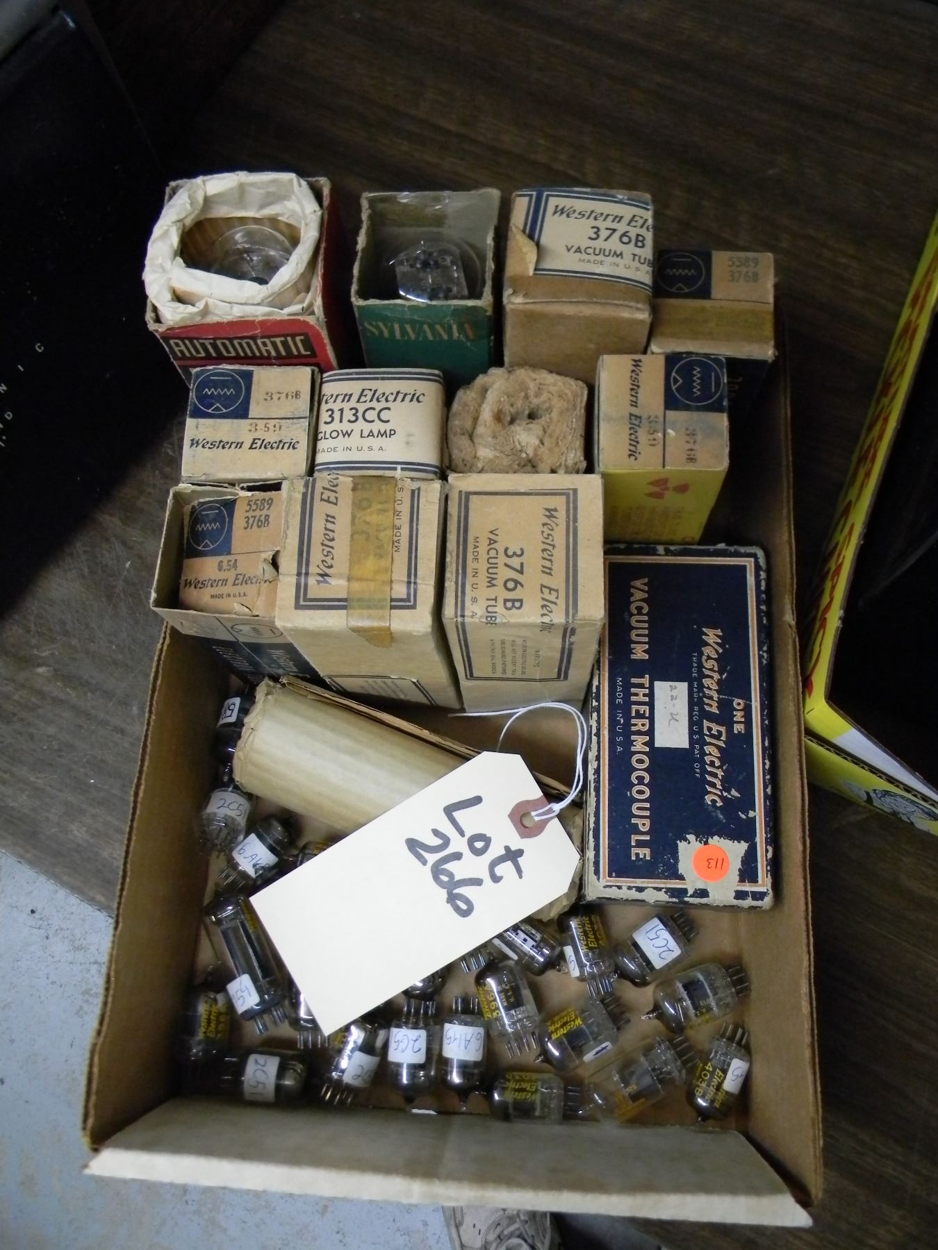 Flat of Western Electric tubes; includes NOS and minatures (there is a VT-52, but it does not test good