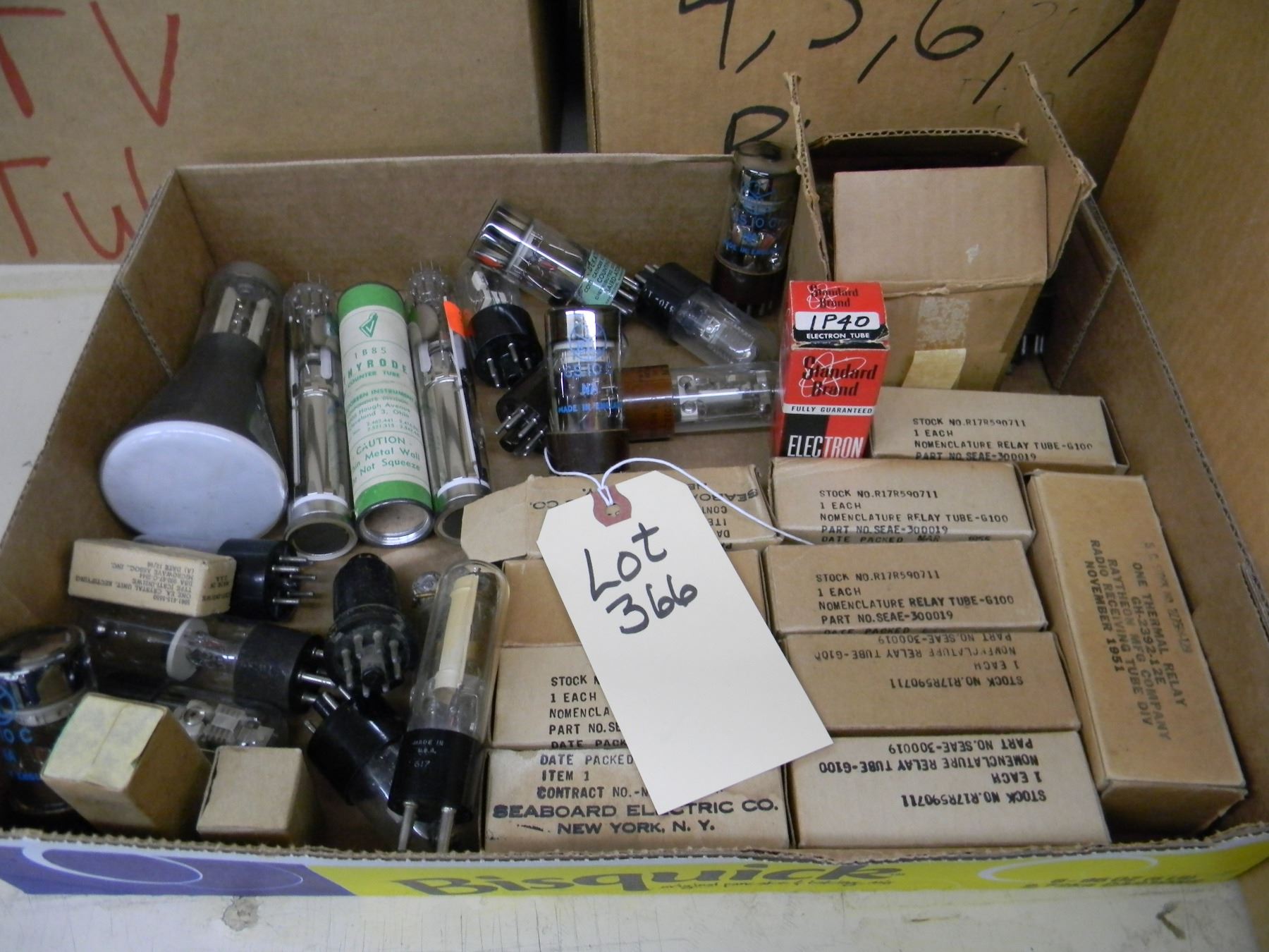 box of tubes - odd tubes, including several photo multiplier tubes