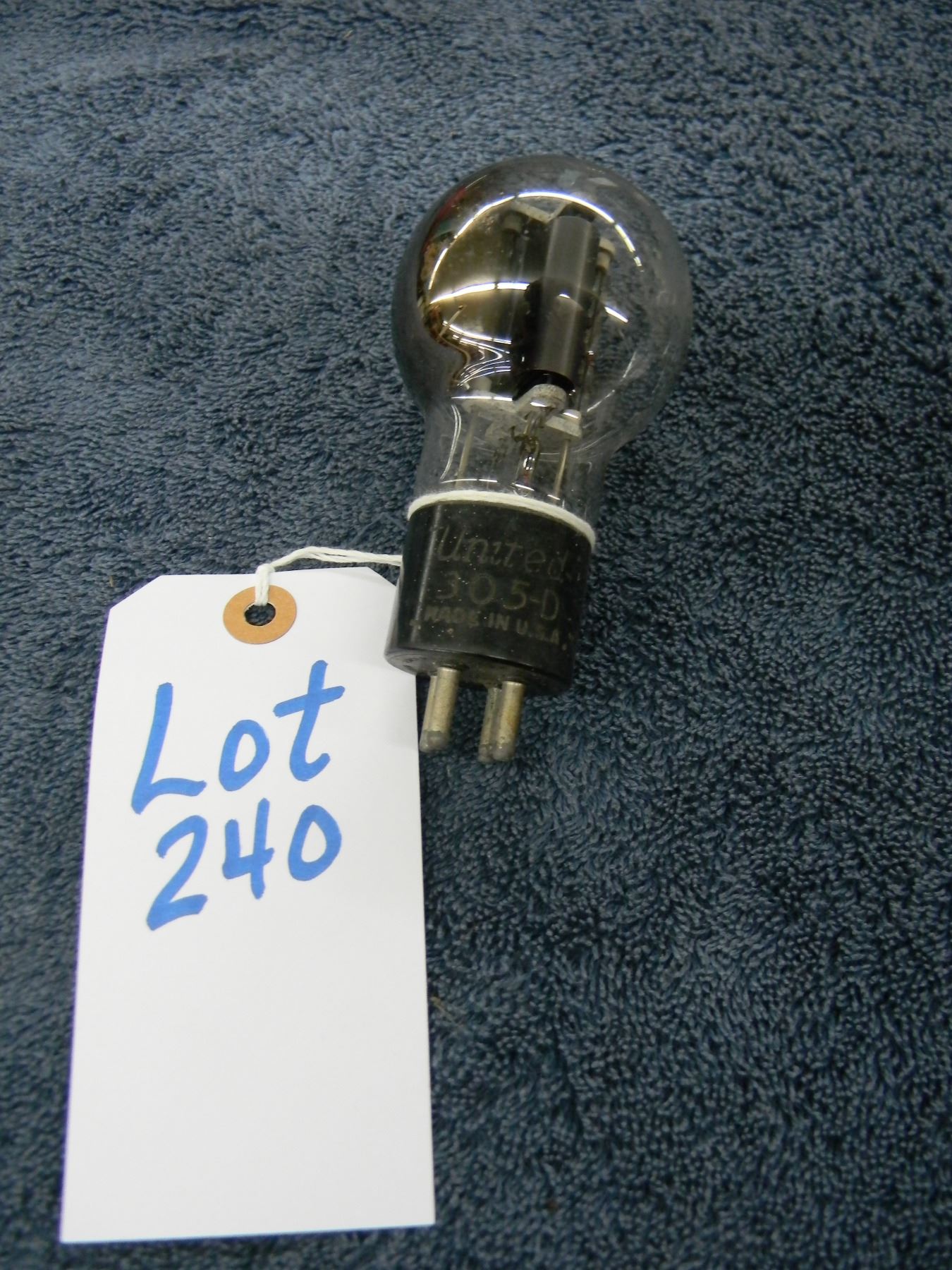 United tennis ball tube, type 305-D; This audio tube tests weak (emission 16) on a TV-7D