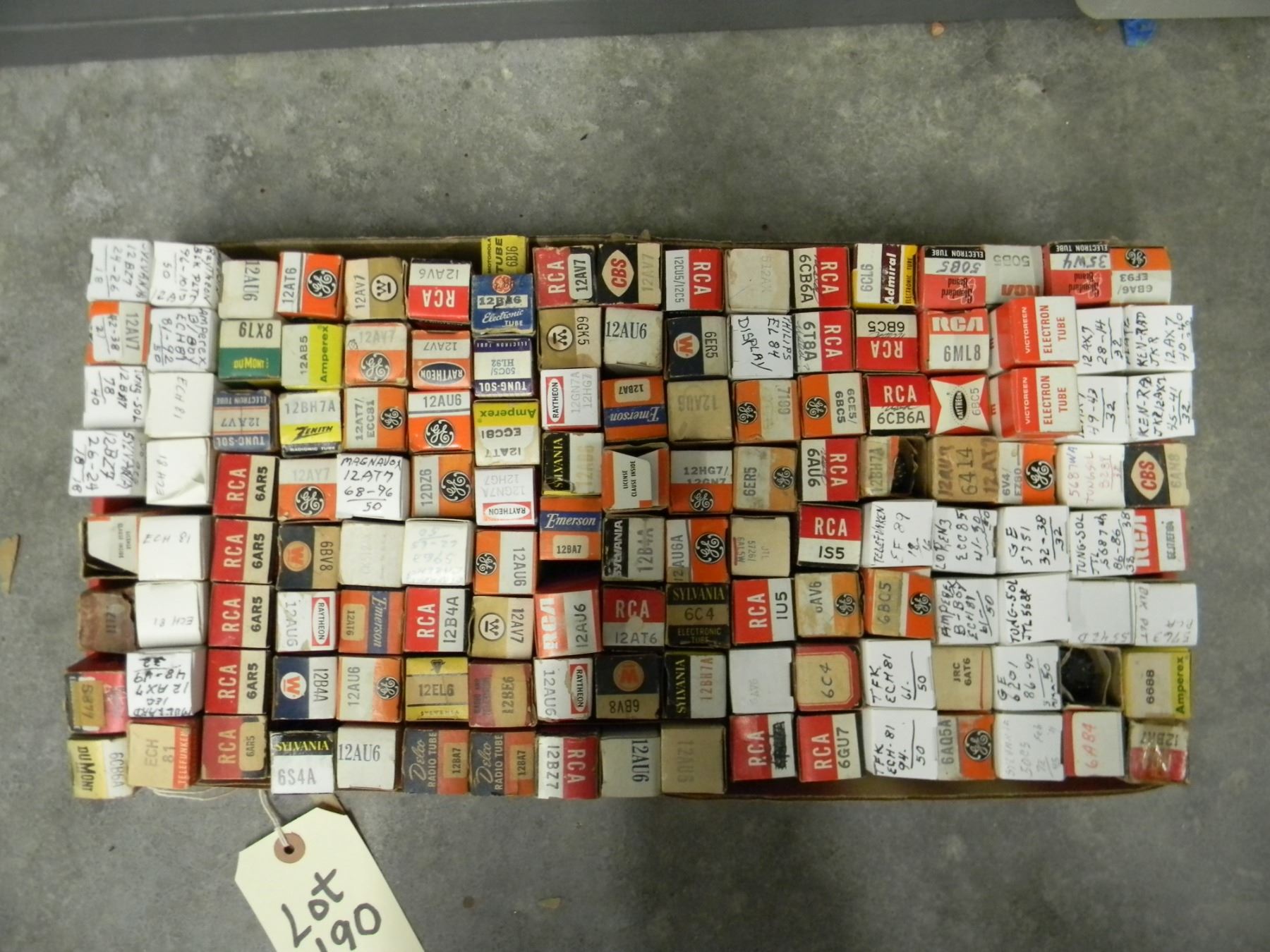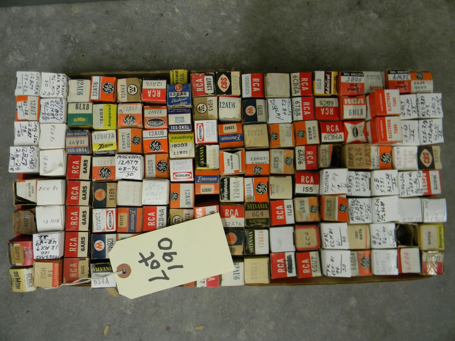 Flat of boxed tubes; mostly NOS and tested boxed miniature tubes