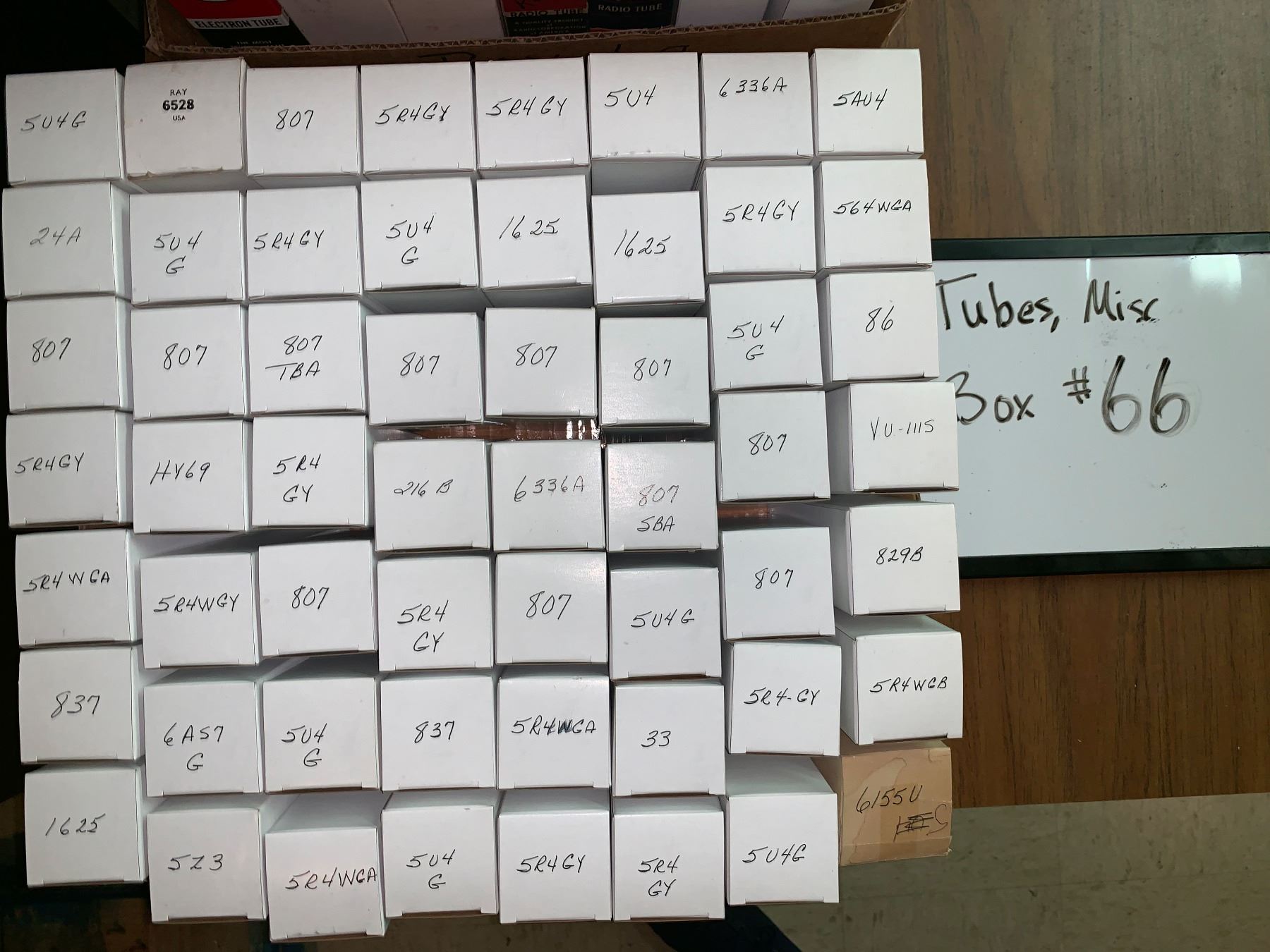The auction company has made a sampling of the marked tube boxes in an attempt to verify that the tube number marked on the box top is indeed the tube inside the box. However, as every tube box has not been checked, the auctioneer does not guarantee all tube boxes are correctly marked. Again, if you have specific requests to verify type and/or quality of tube, contact the auctioneer directly at the number given elsewhere.