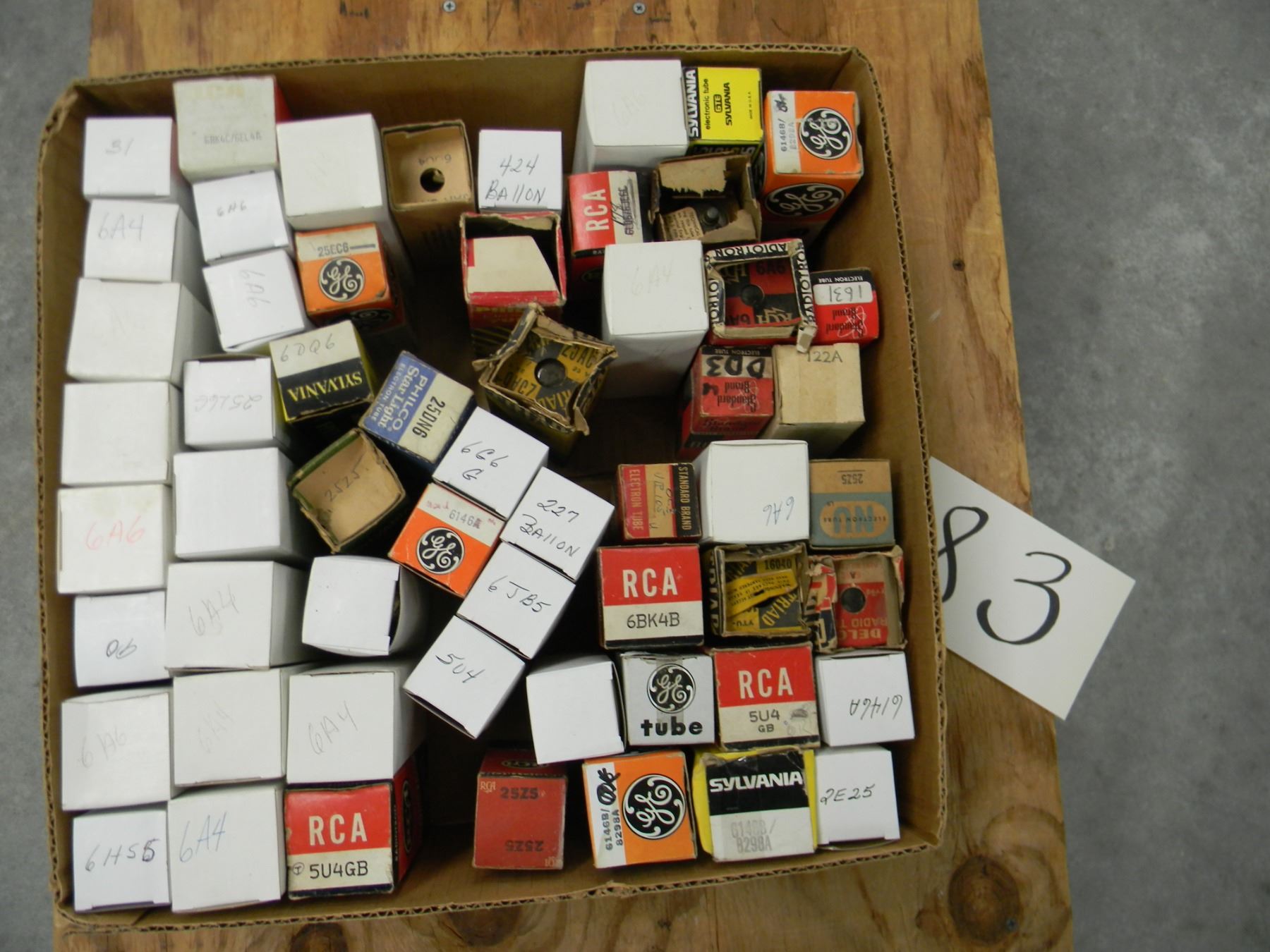 Flat of approximately 55 large and GT boxed tubes