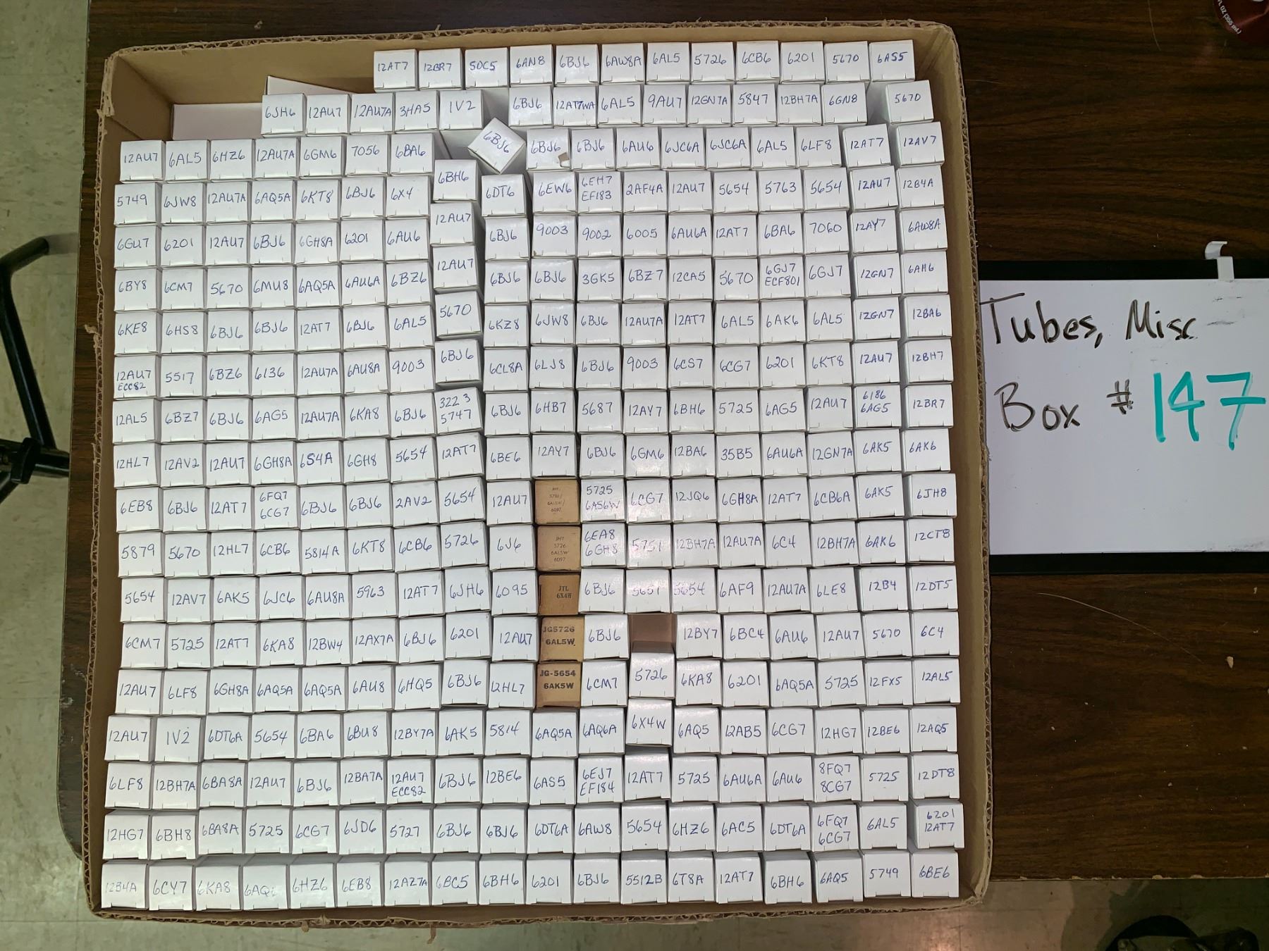 The auction company has made a sampling of the marked tube boxes in an attempt to verify that the tube number marked on the box top is indeed the tube inside the box. However, as every tube box has not been checked, the auctioneer does not guarantee all tube boxes are correctly marked. Again, if you have specific requests to verify type and/or quality of tube, contact the auctioneer directly at the number given elsewhere.