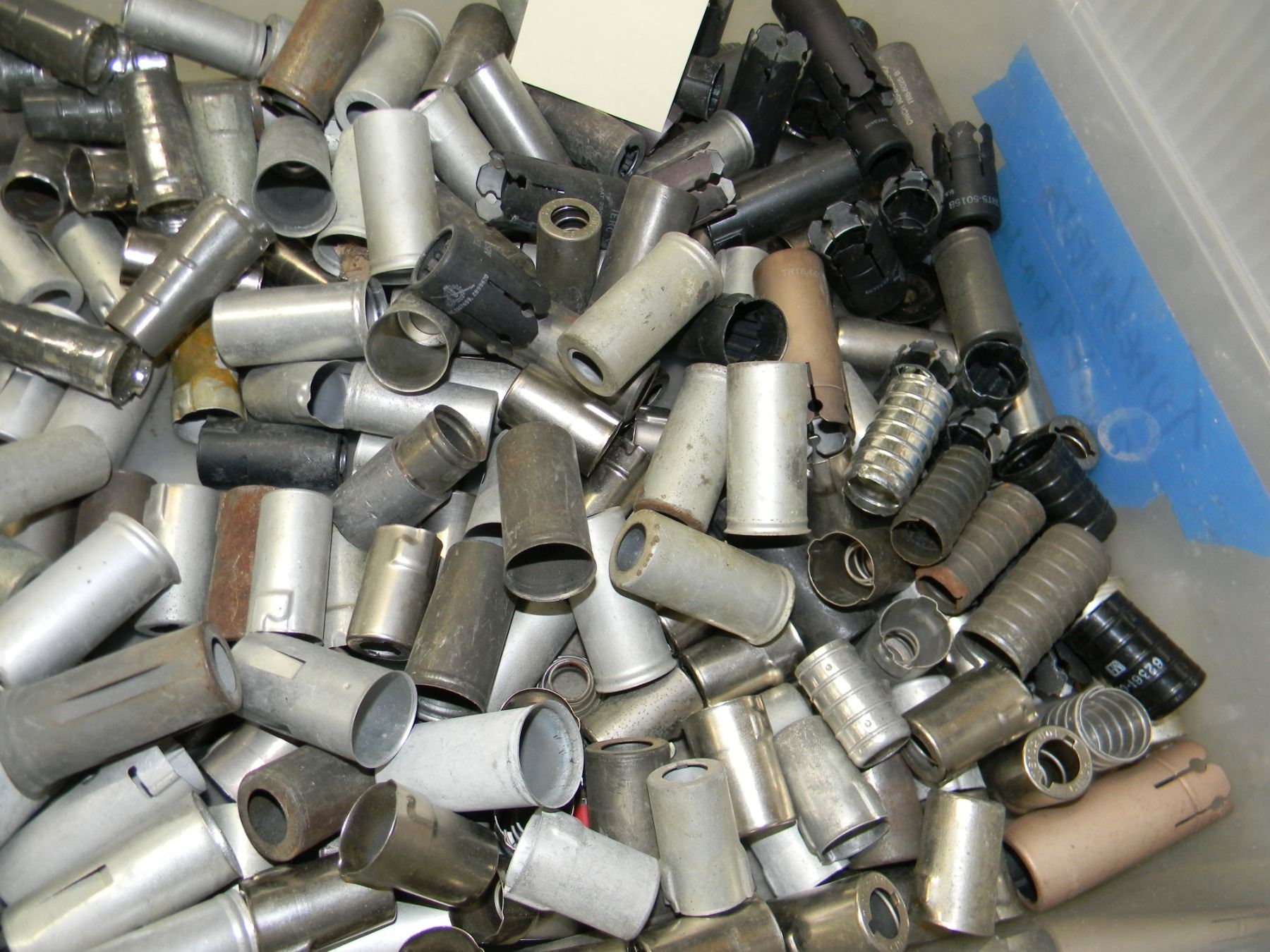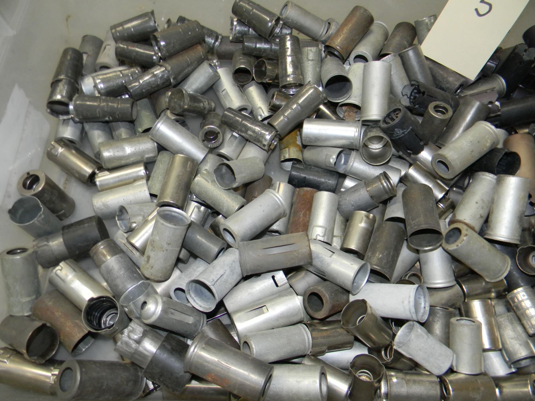 Flat of tubes; large lot of miniature 9 and 7 pin tube shields