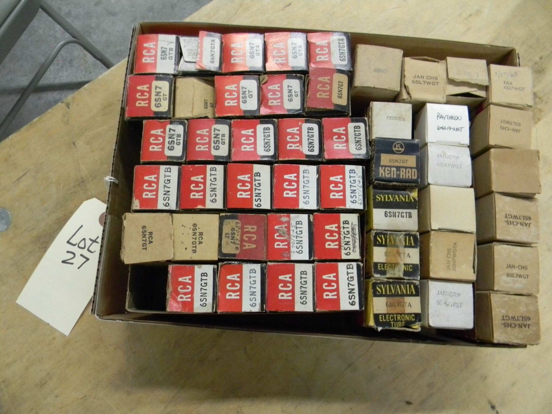 Flat of tubes; mostly NOS 6SN7; approximately 45 audio tubes