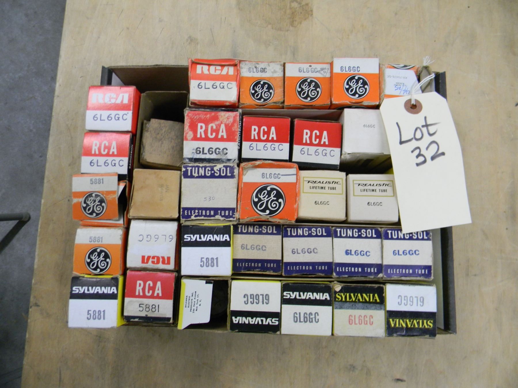 Flat of tubes; mostly NOS 6L6GC and 5881 output tubes; approximately 35